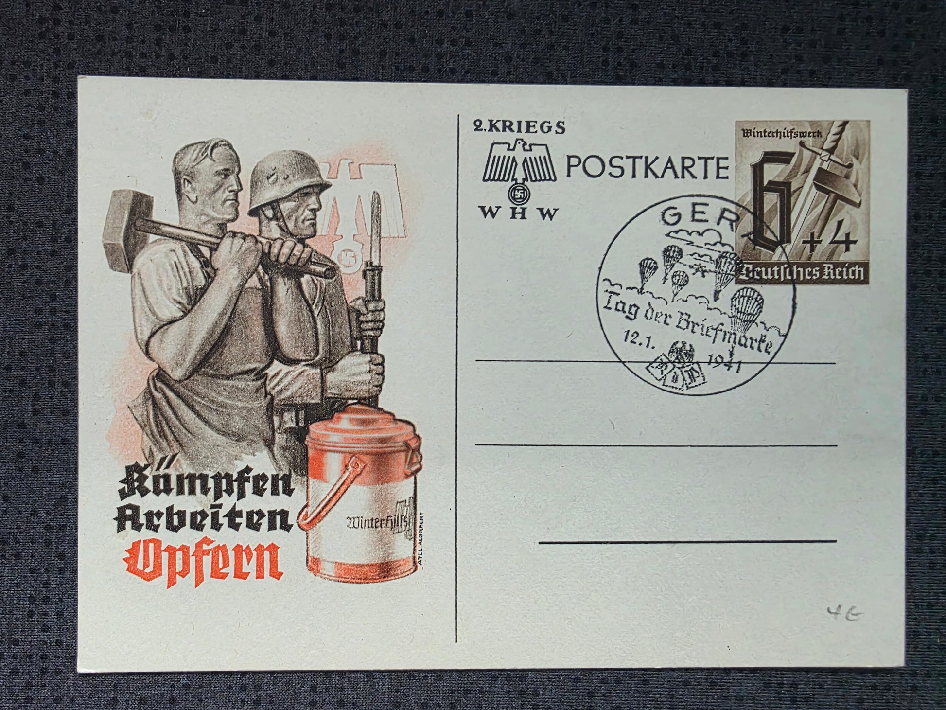 Propaganda-Postkarte Kämpfen, Arbeiten, Opfern Winterhilfswerk WHW