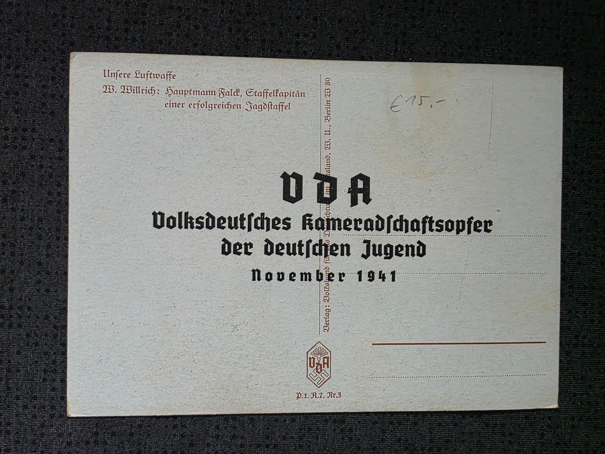 Propaganda-Postkarte Staffelkapitän Hauptmann Falck 2./ZG-76 VDA Karte Willrich