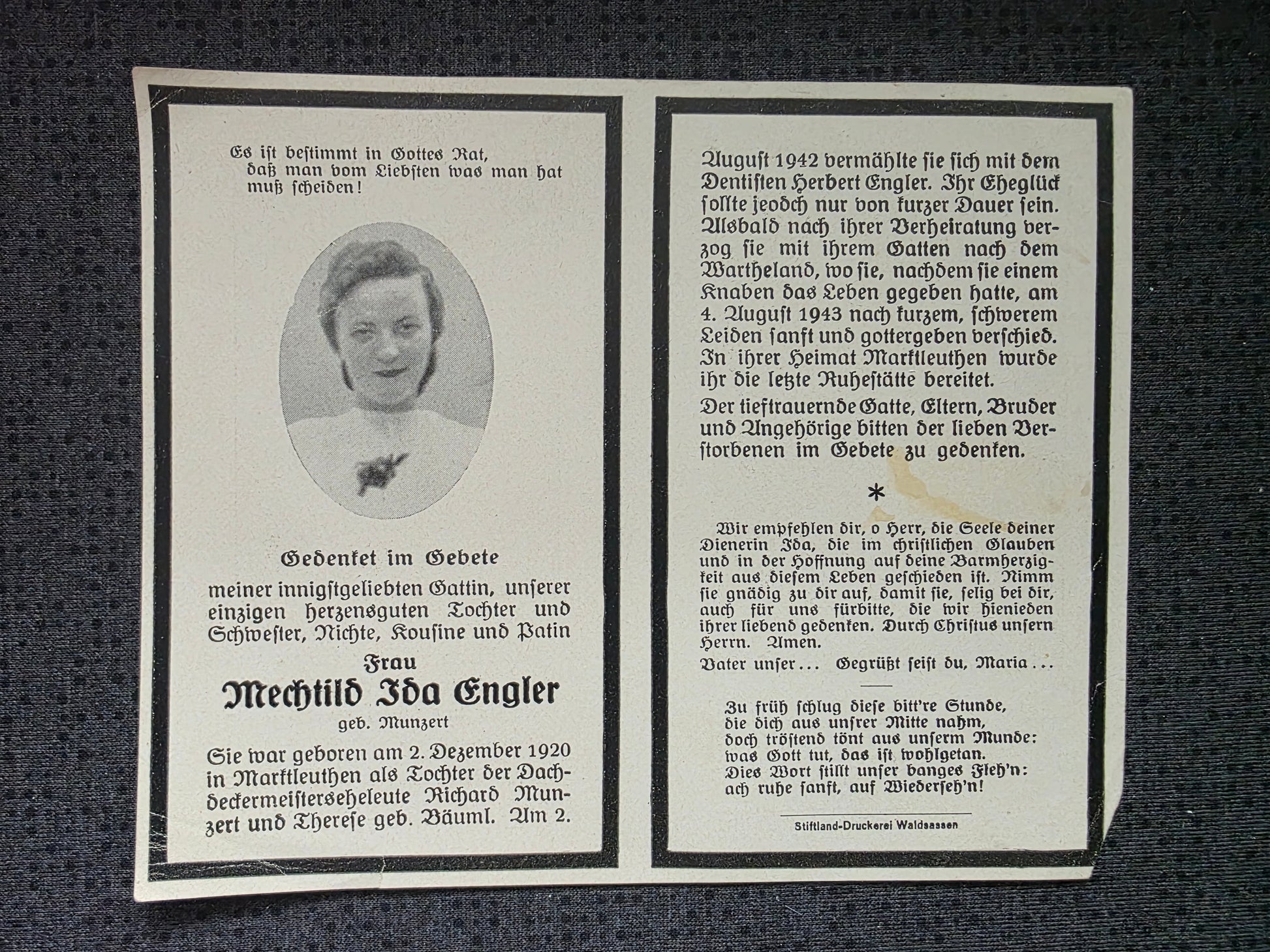 Sterbebild 2 x Zivile Mädchen Frau Marktleuthen Leskau Gestorben im WWII