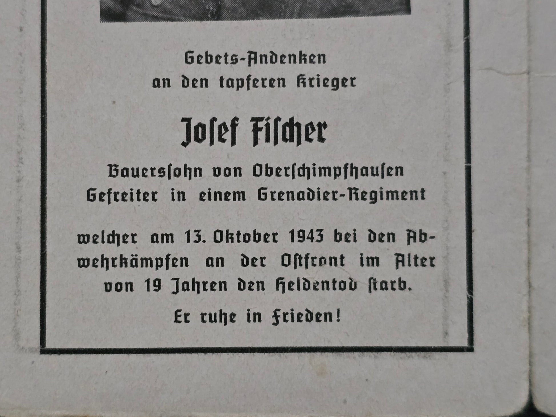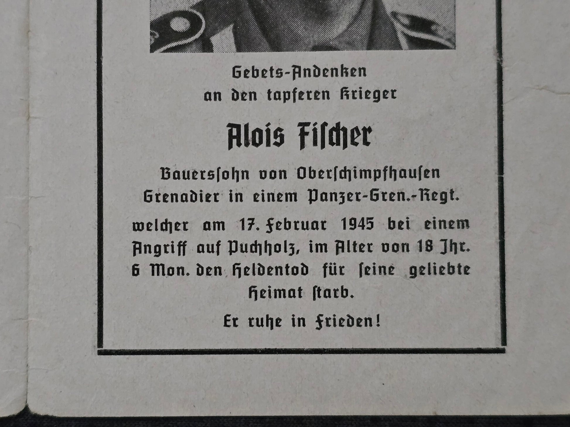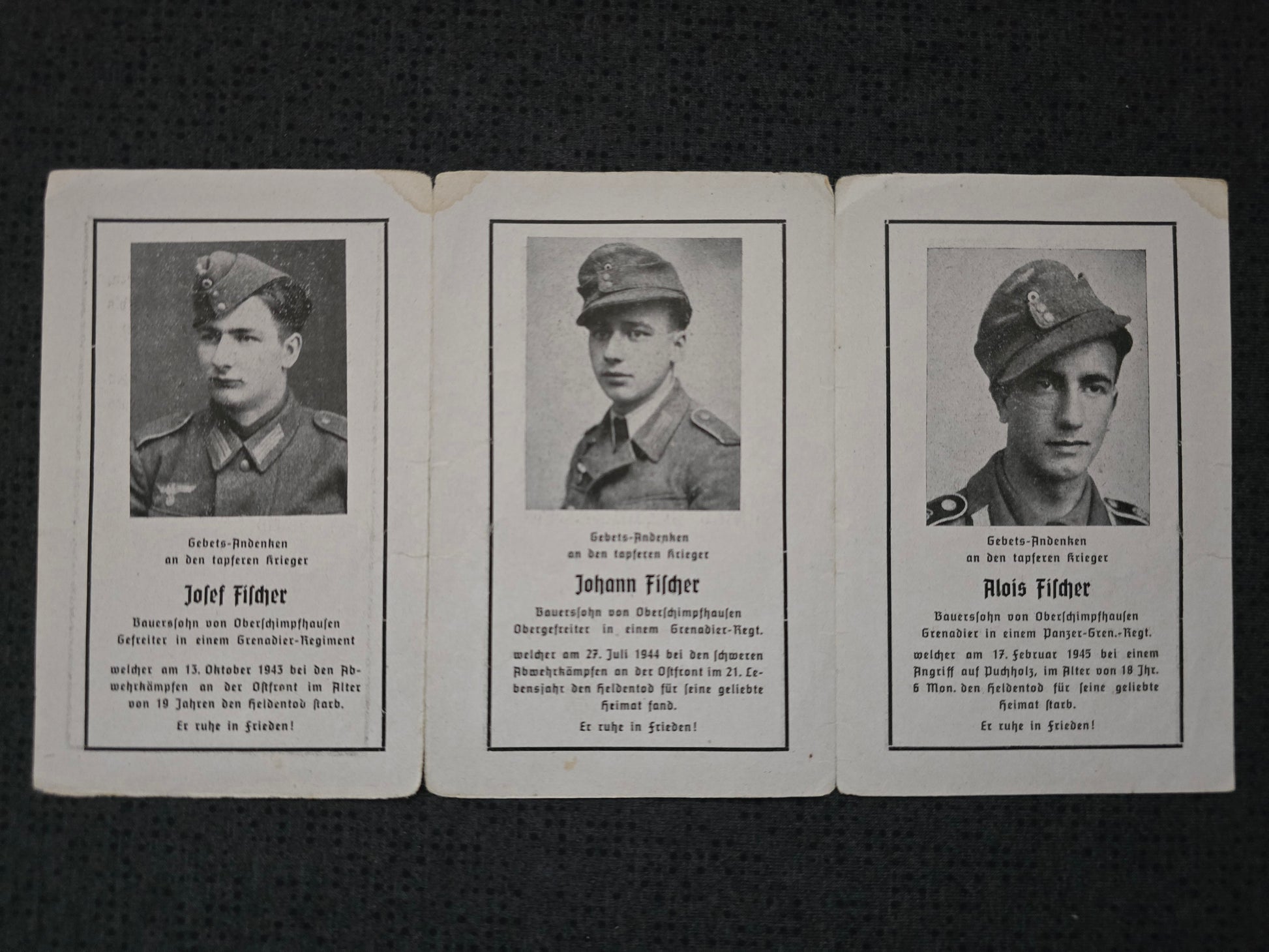 Sterbebild 3 Brüder Oberschimpfhausen Gefreite 3. Komp. Gren. Regt. 421 Obergefreiter Grenadier Pz.-Gren. Regt. Endkampf Buchholz Pommern Polen