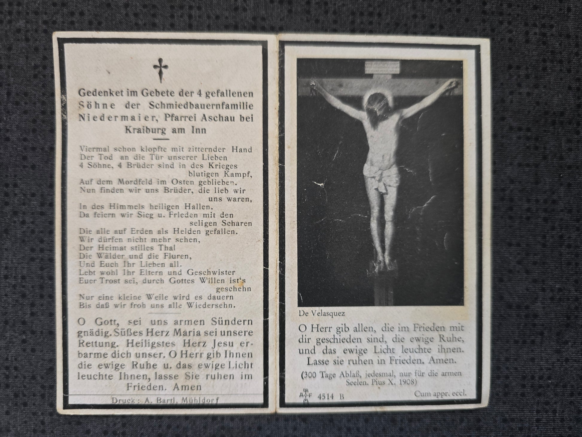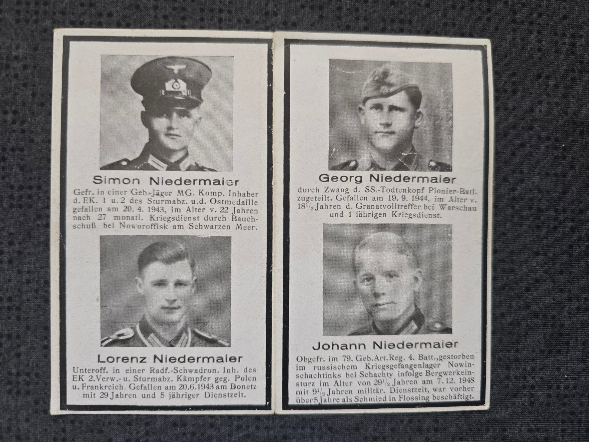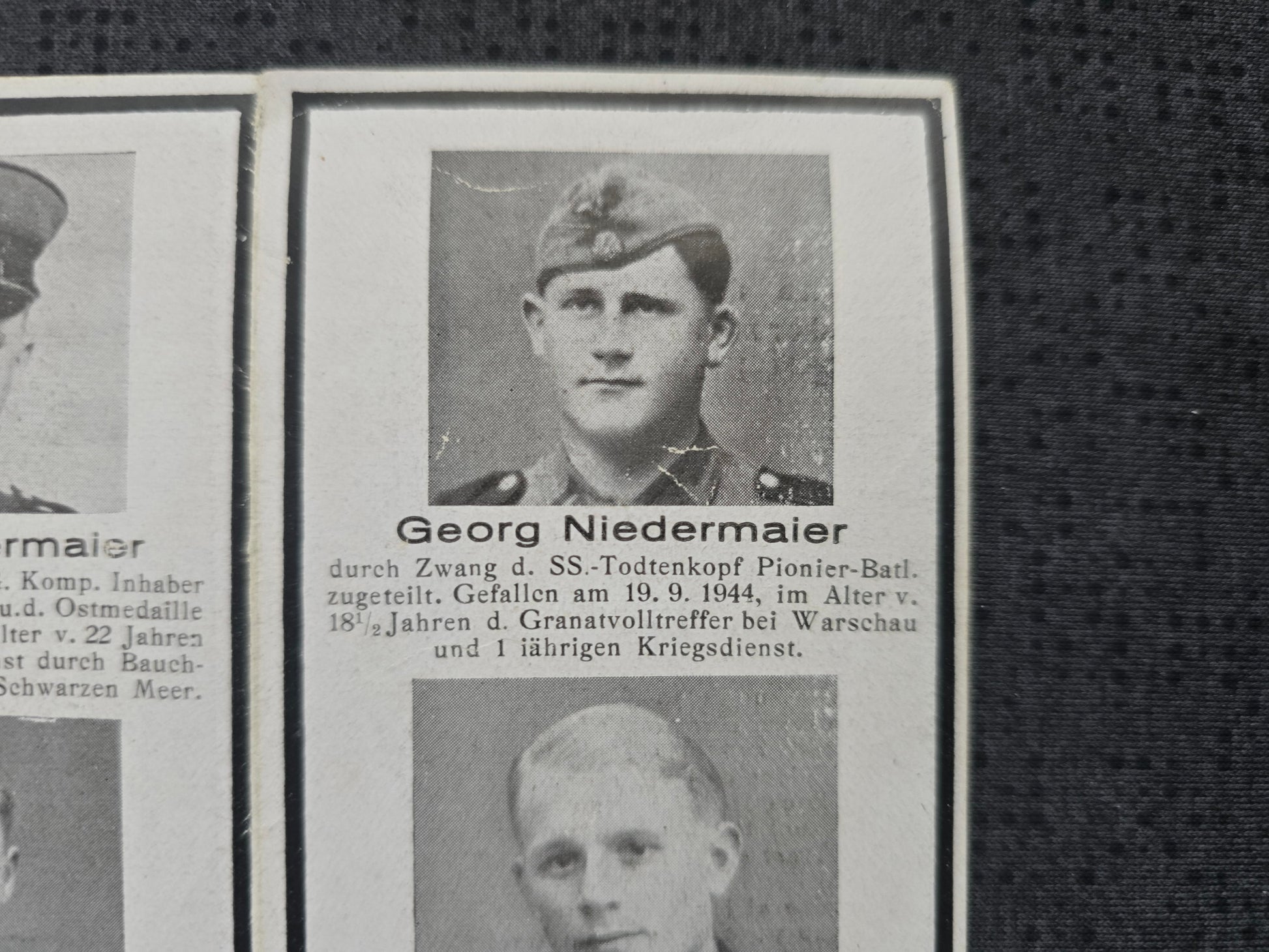 Sterbebild 4 Brüder Aschau Gefreiter Unteroffizier SS-Pionier "Totenkopf" Radfahr Schwadron Warschau Polen Russland