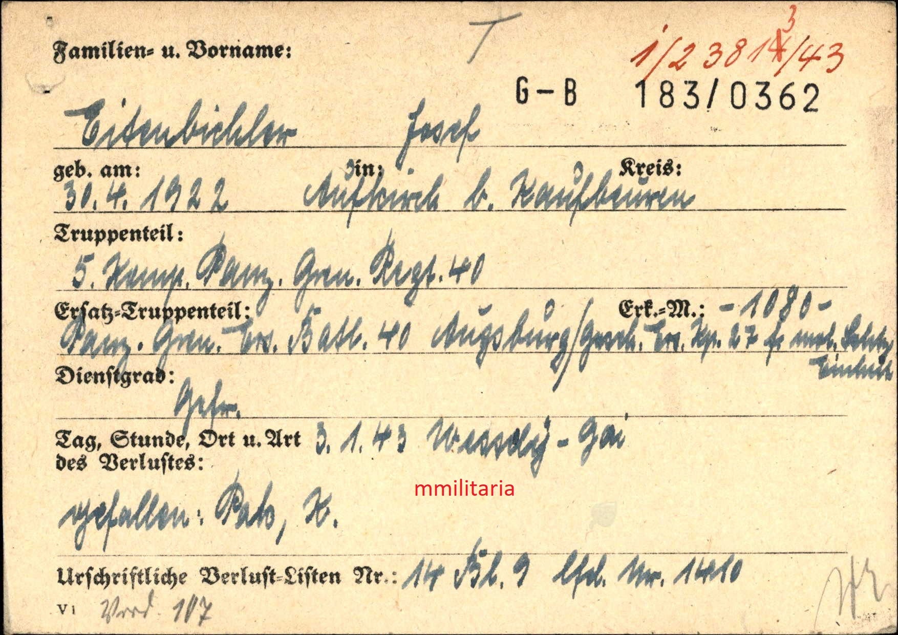 Gefallen am 03.01.1943 bei Stalingrad (Russland)