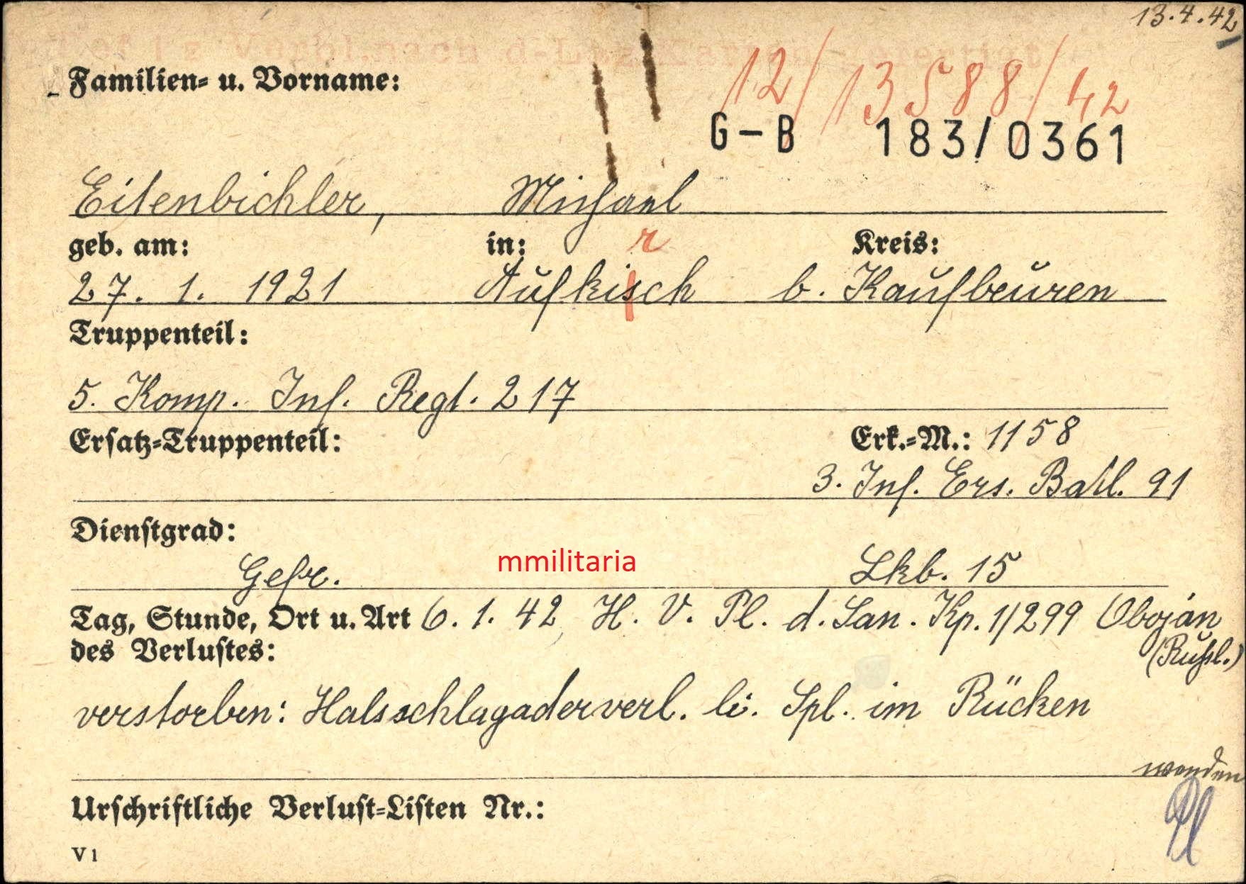 Gefallen am 06.01.1942 bei Obojan (Russland)