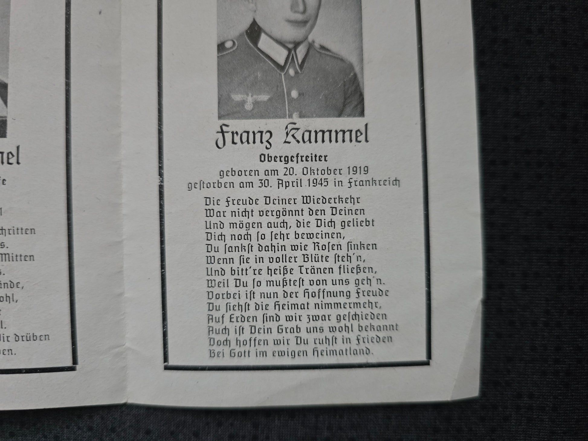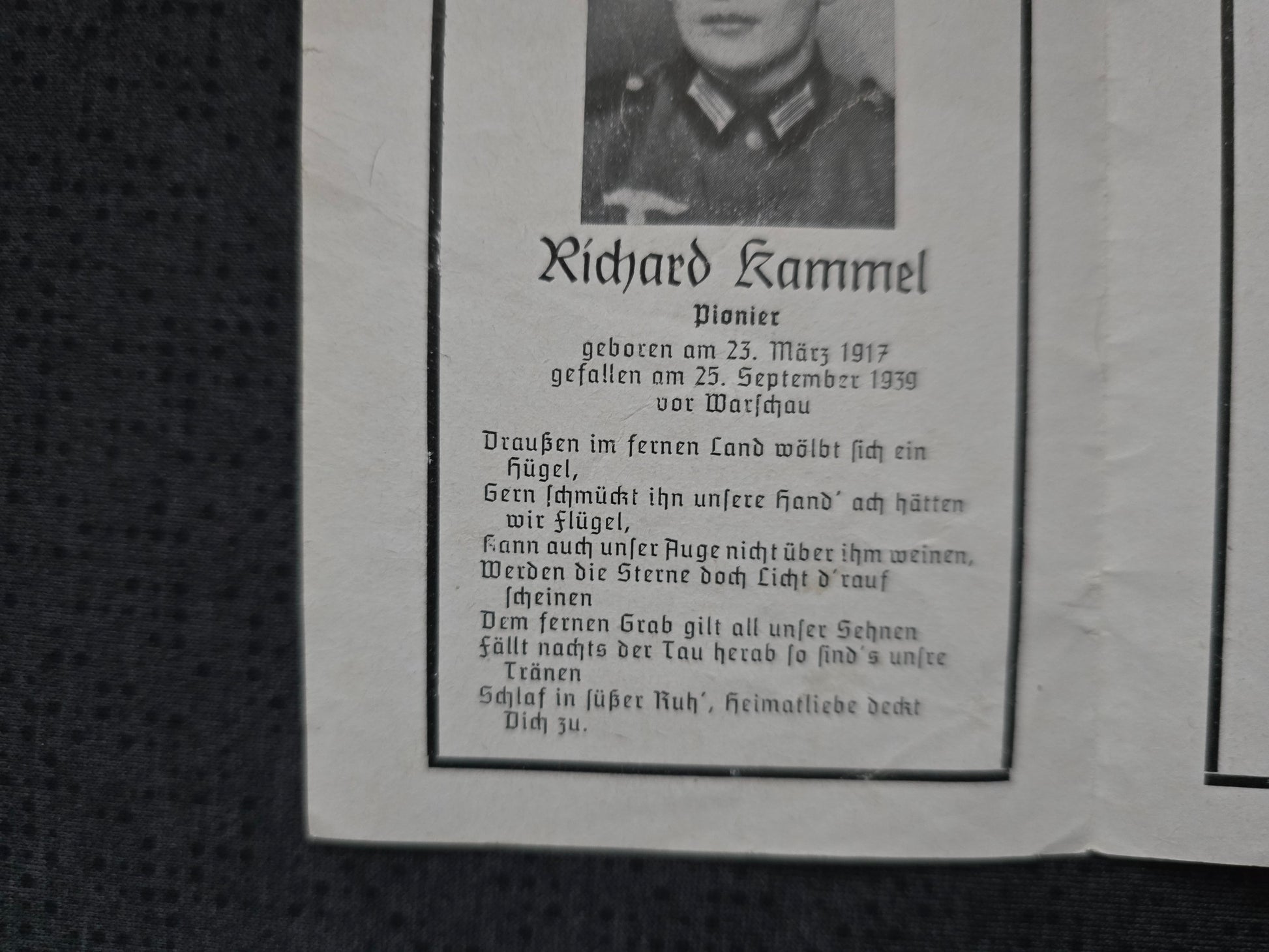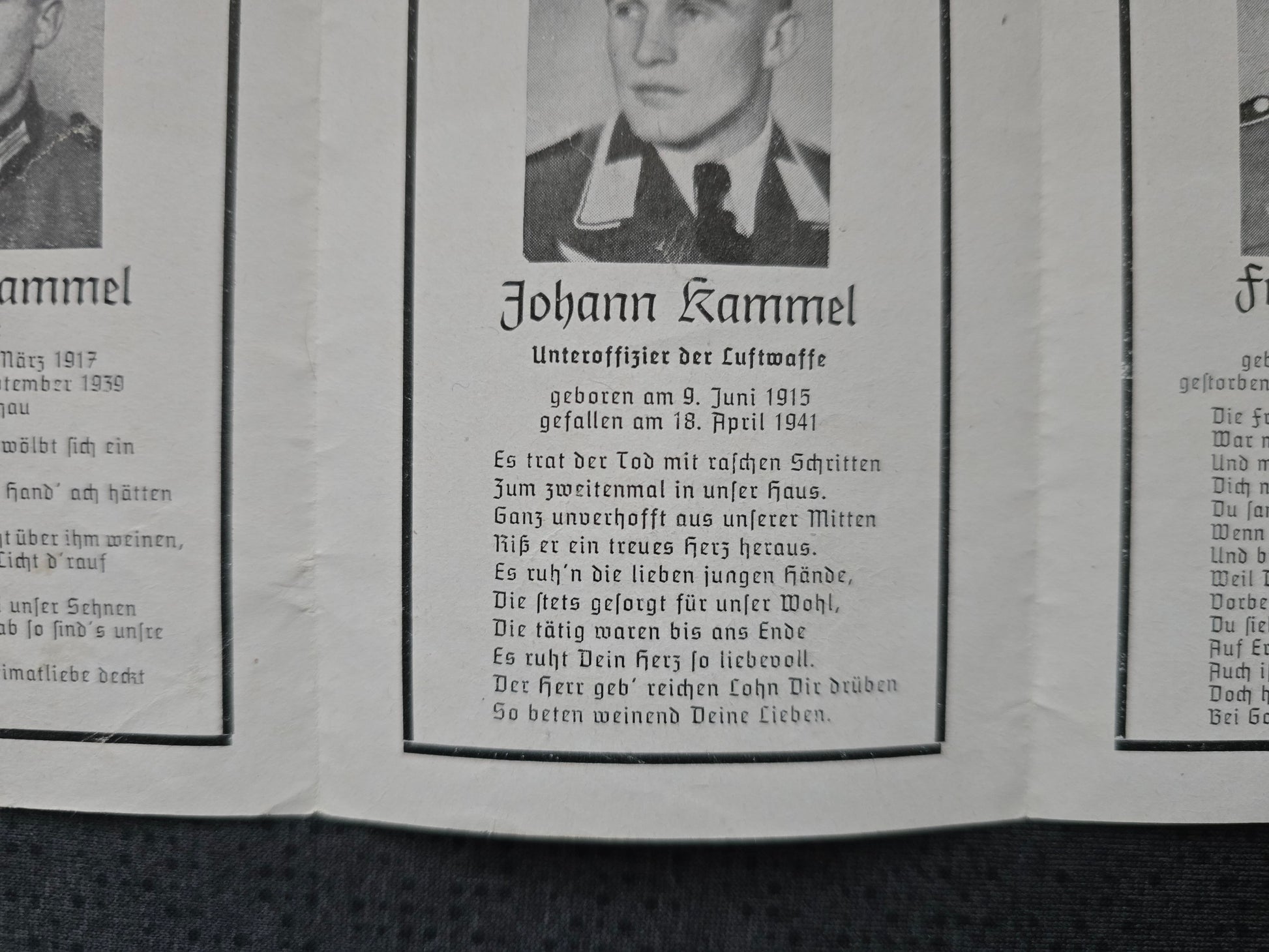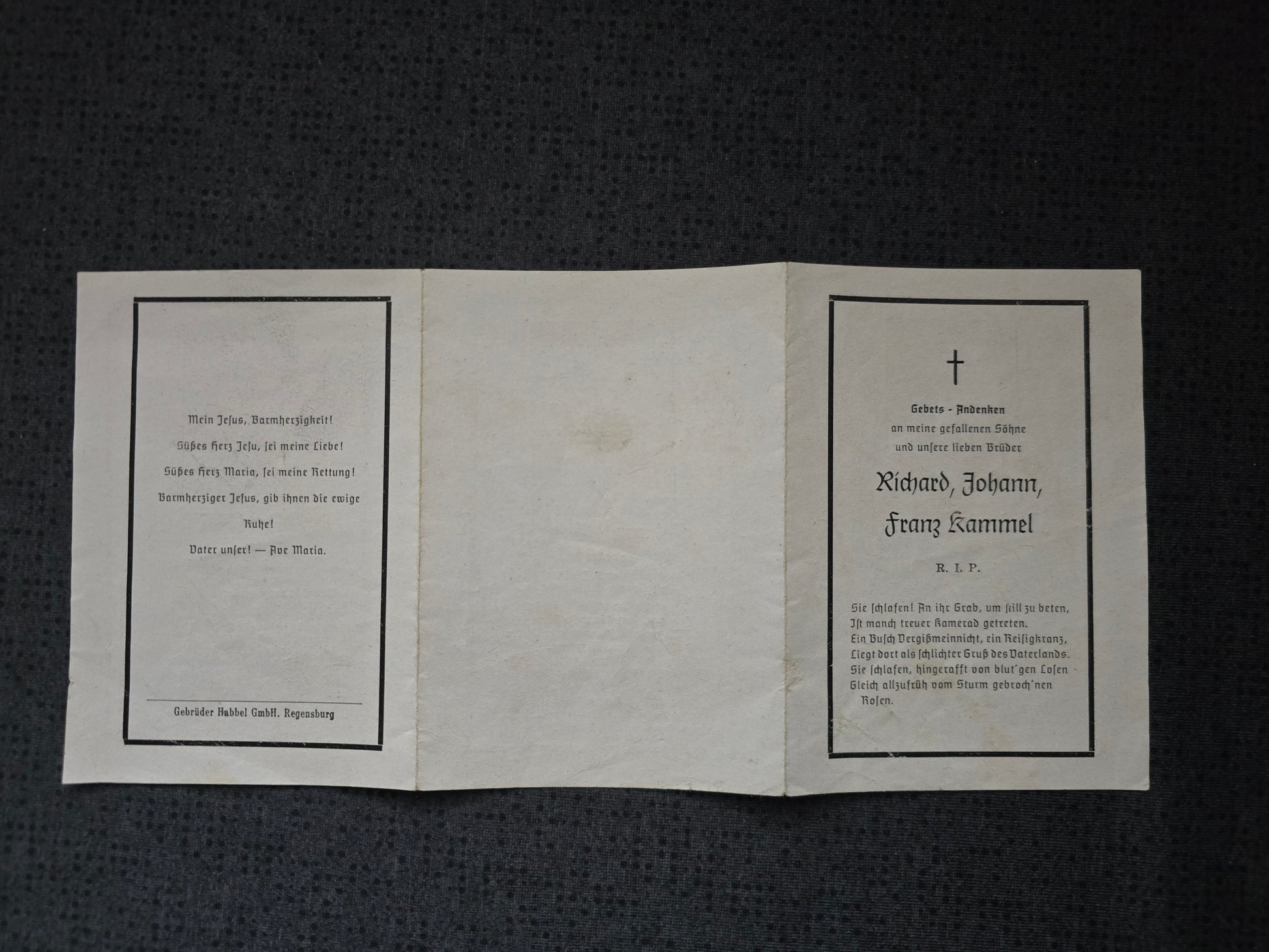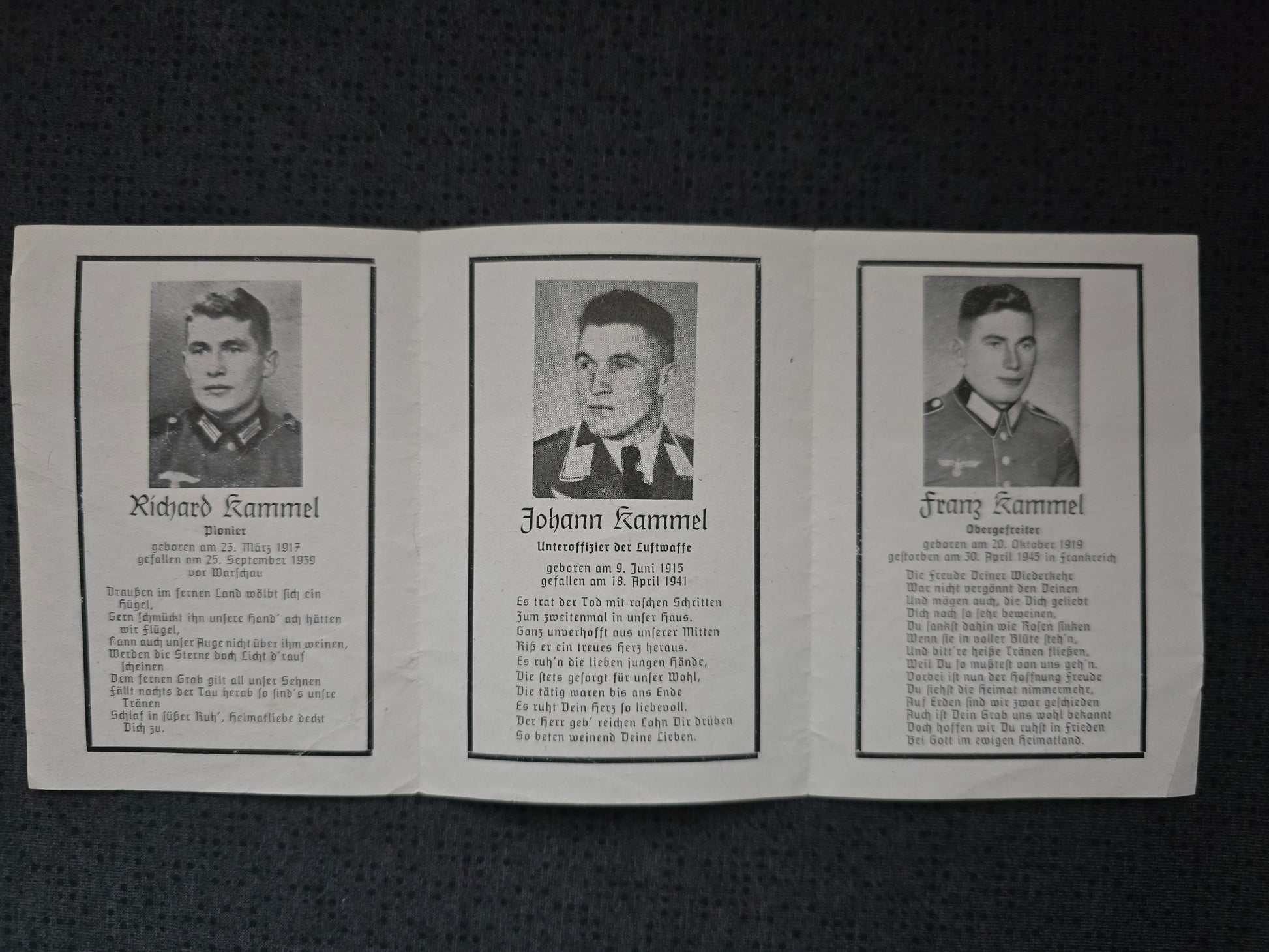 Sterbebild 3 Brüder Pionier 2. Komp. Pion. Btl. 10 Warschau 1939 Bordfunker Jagdfliegerschule Obergefreiter Frankreich