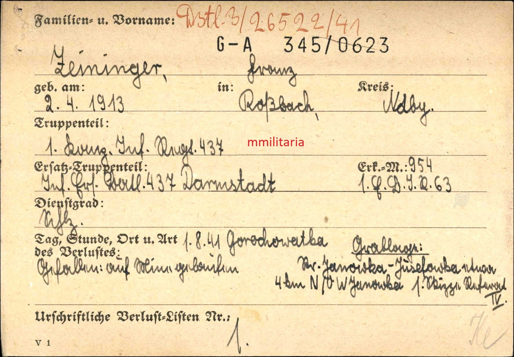 Gefallen am 01.08.1941 in Corochowatka (Ukraine)