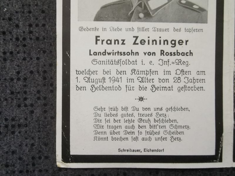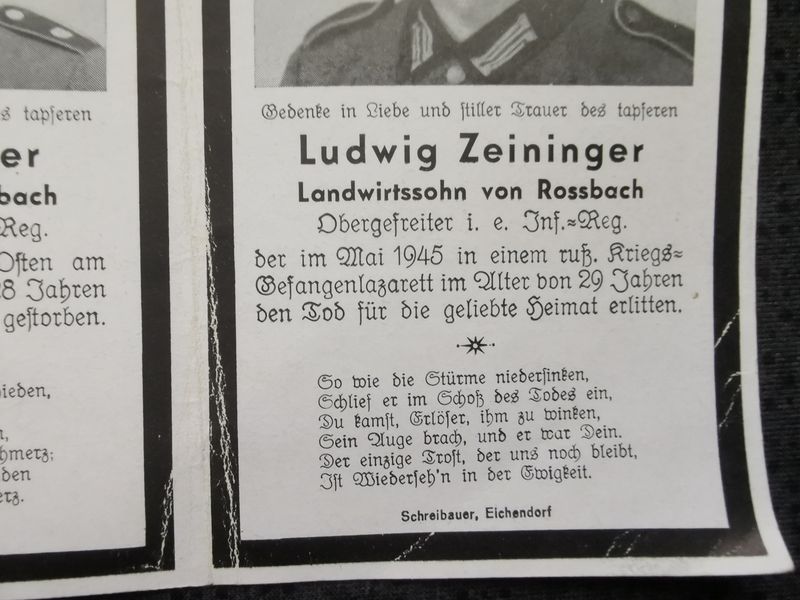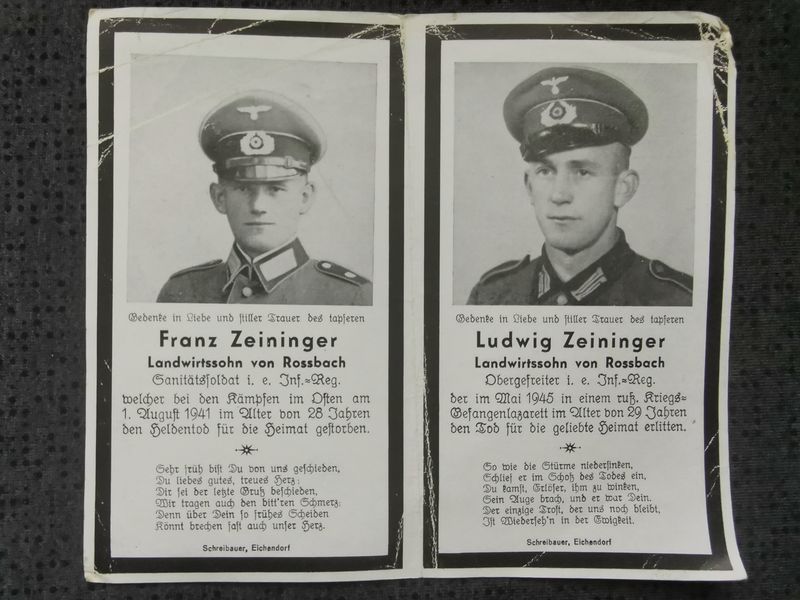Sterbebild Brüder Rossbach Sanitäter 1. Komp. Inf. Regt. 437 Corochowatka Ukraine Obergefreiter Endkampf Russland