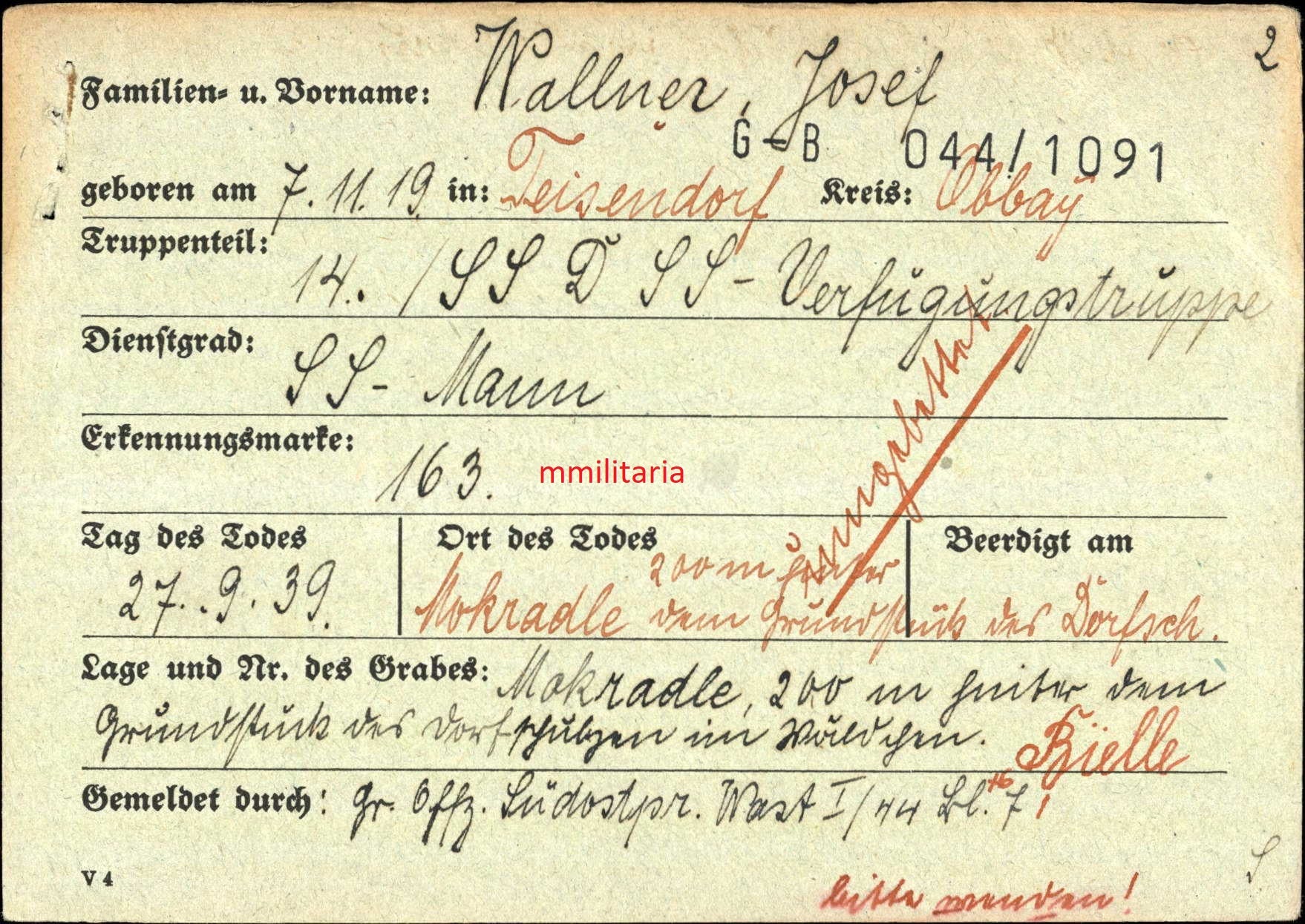 Gefallen am 27.09.1939 in Polen