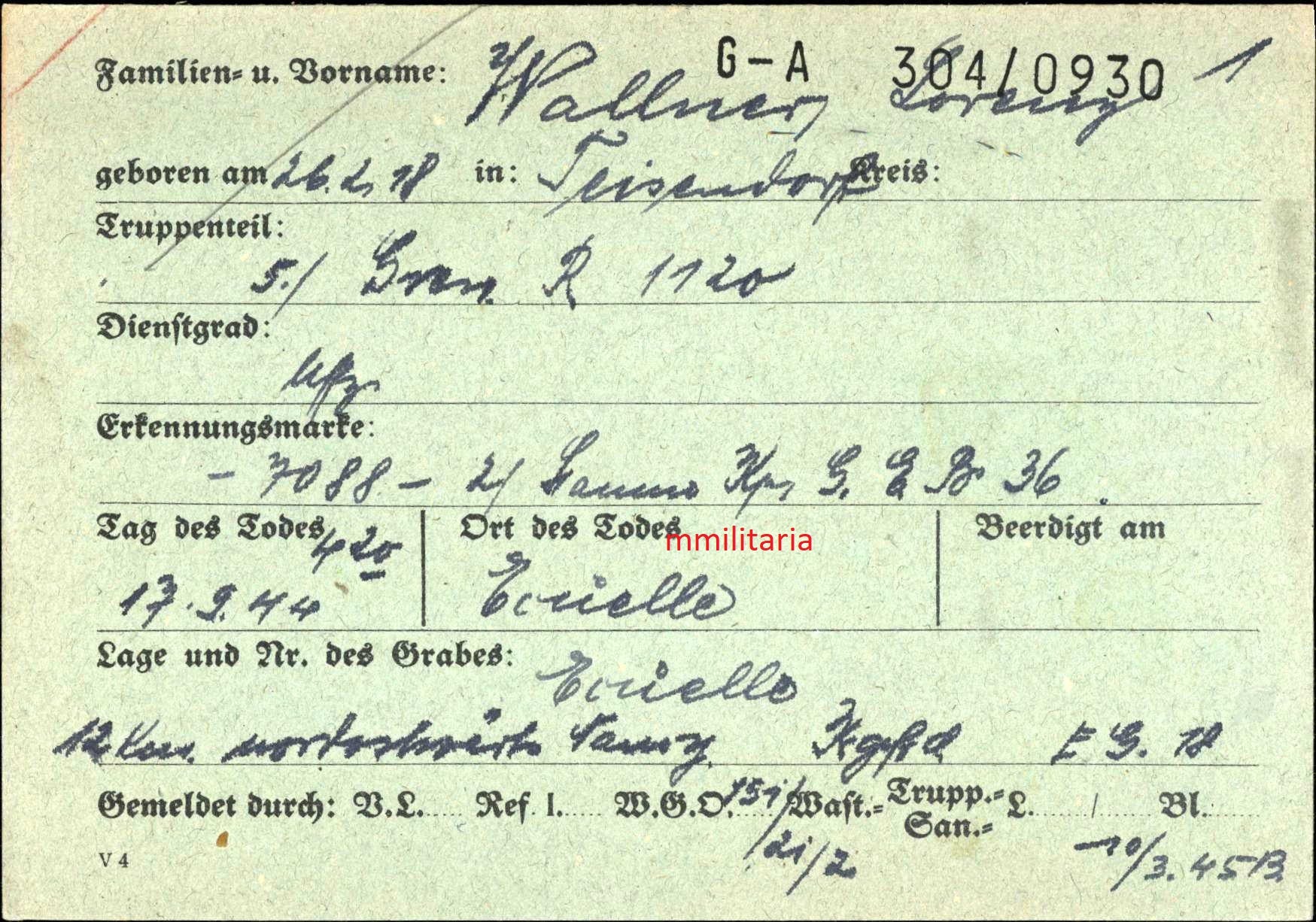 Gefallen am 17.09.1944 in Ecuelle (Frankreich)