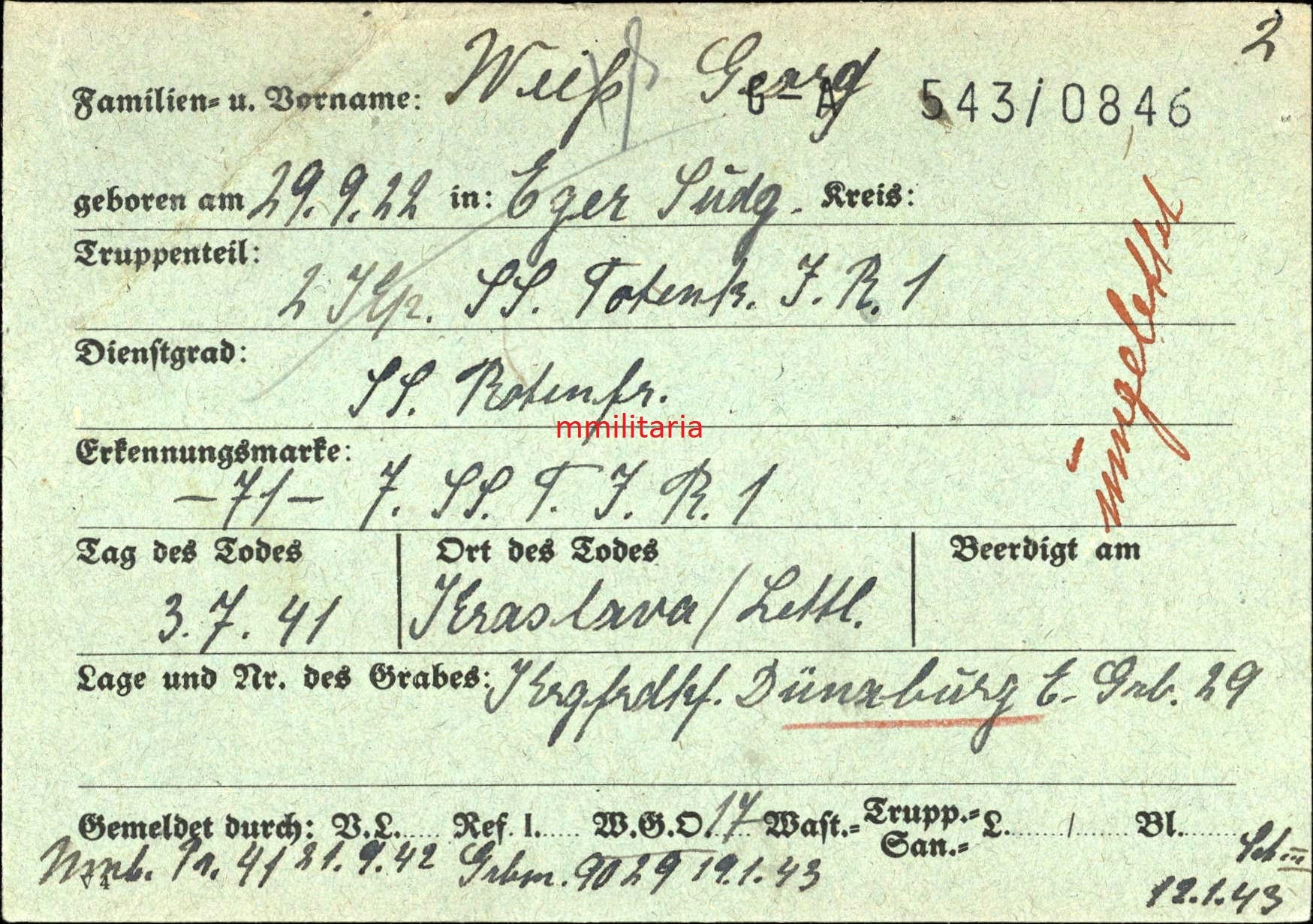 SS-Rottenführer 2. Komp. SS. Totenkopf Inf. Regt. 1