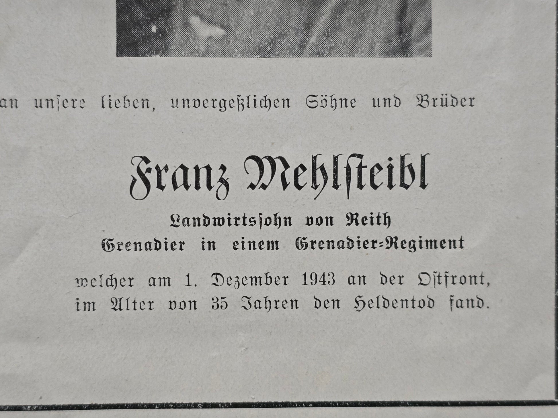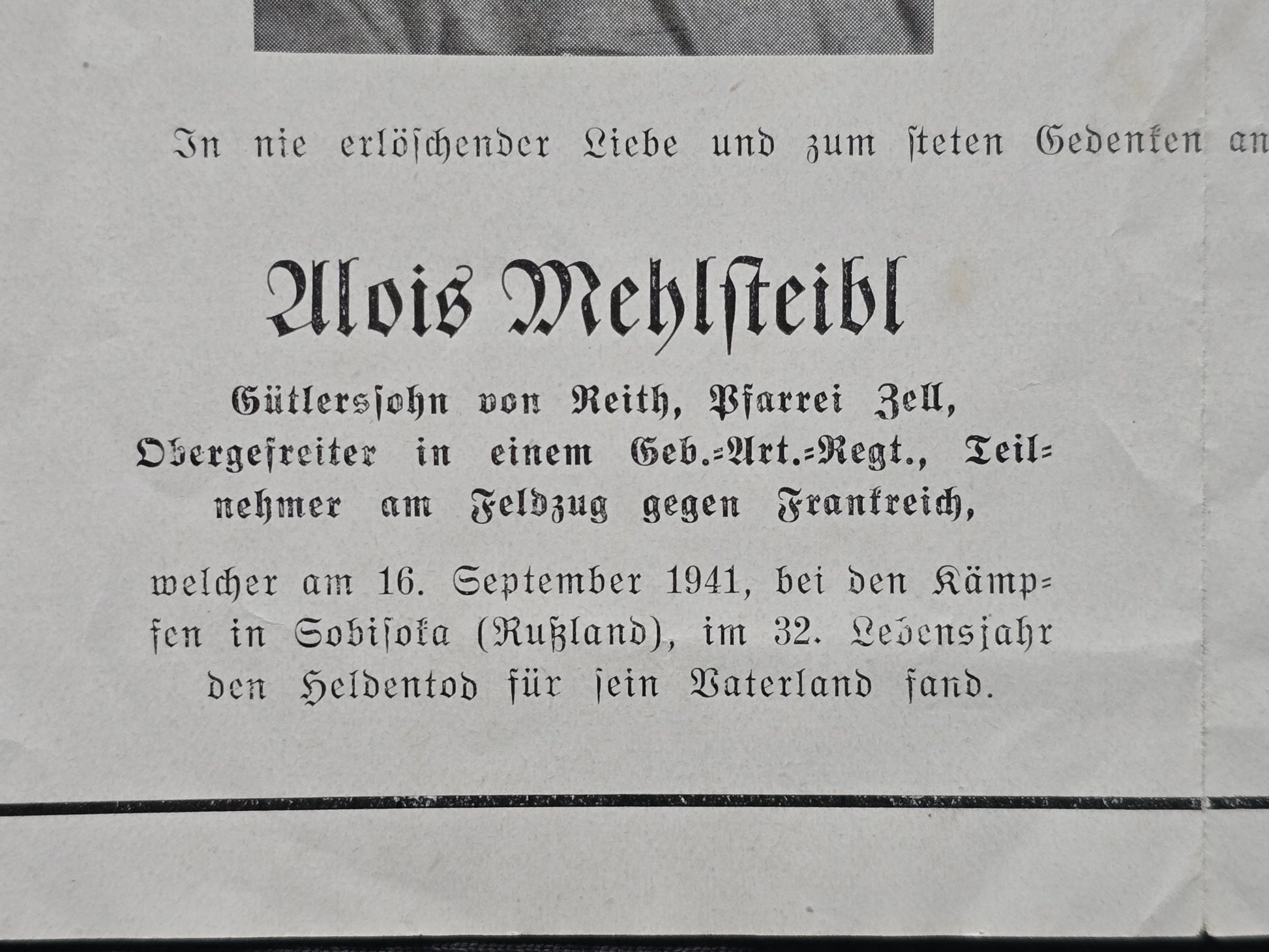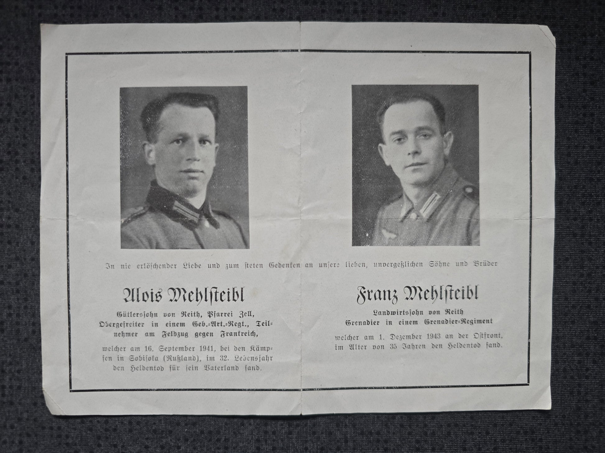 Sterbebild Brüder Obergefreiter Schöpfbach 5. Geb. Art. Regt. 79 Grenadier Russland