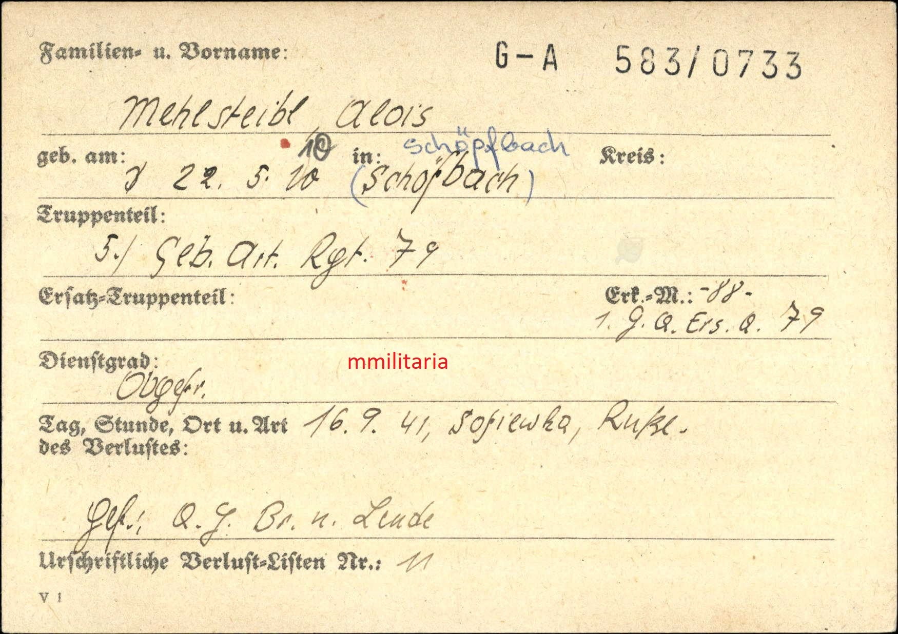Gefallen am 16.09.1941 in Sofiewka (Russland)