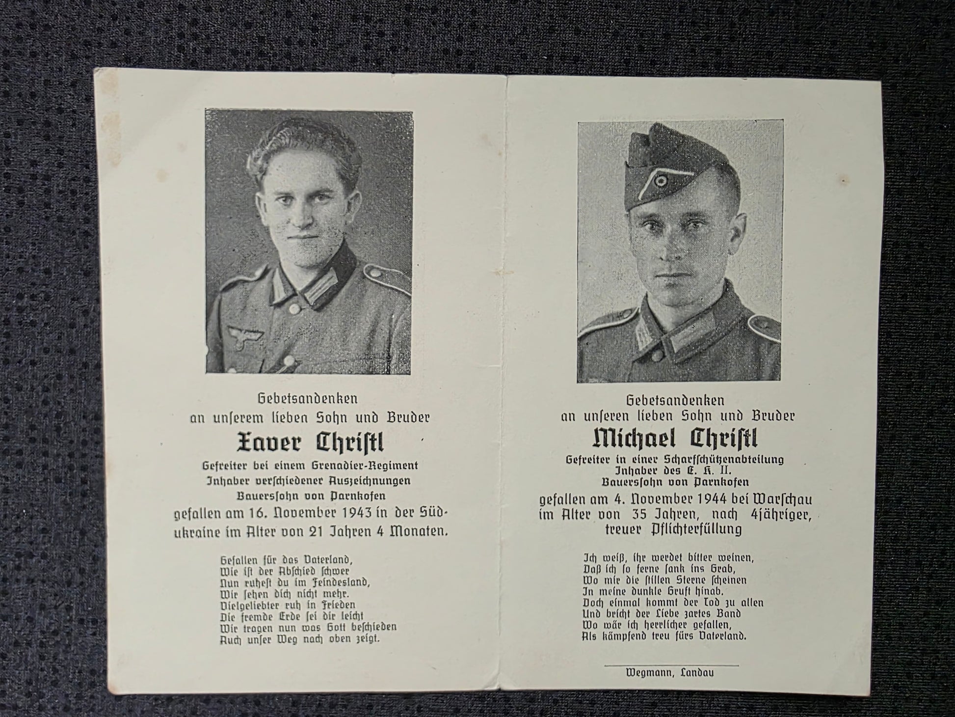 Sterbebild Brüder Parnkofen Gefreiter Gren. Regt. Rumänien Scharfschütze Warschau Polen