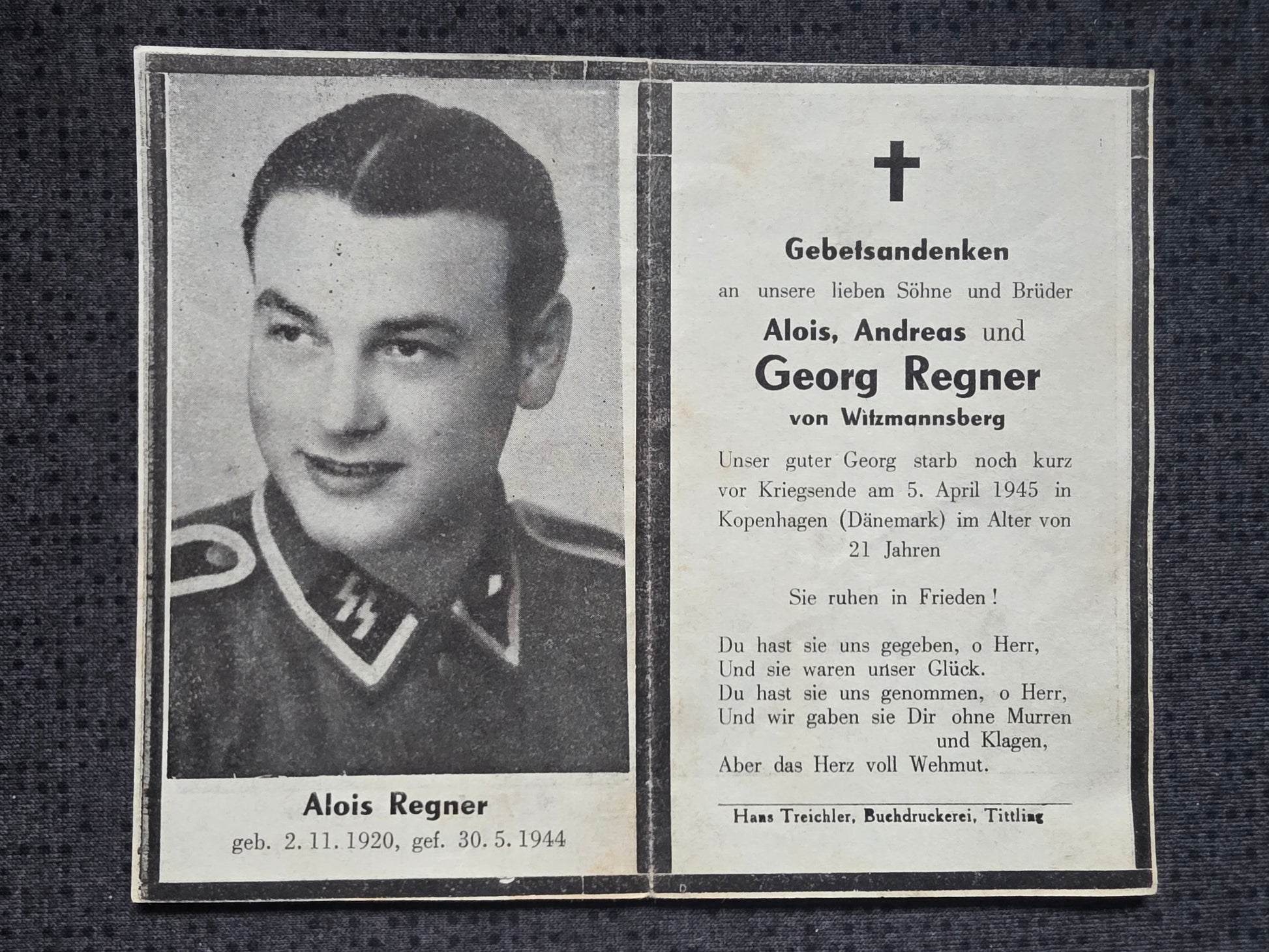 Sterbebild Brüder Witzmannsberg SS-Unterscharführer Farsalos Griechenland Panzer Regt. Kopenhagen Dänemark Obergefreiter Lilijas Lettland