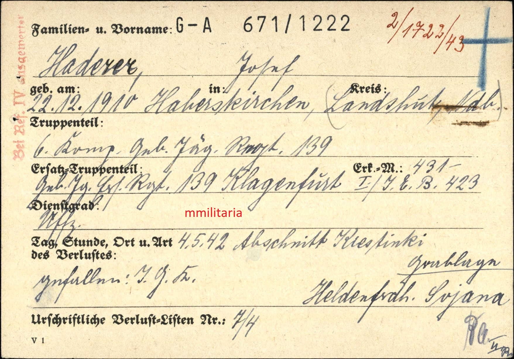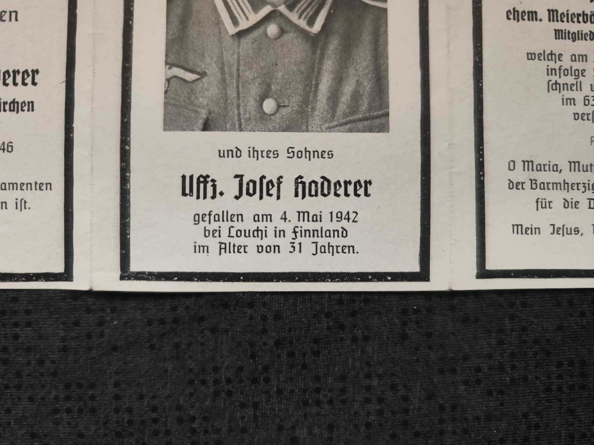 Sterbebild Familie Unteroffizier 6. Komp. Gebirgsjäger Regt. 139 Louchi Kiestinki Finnland
