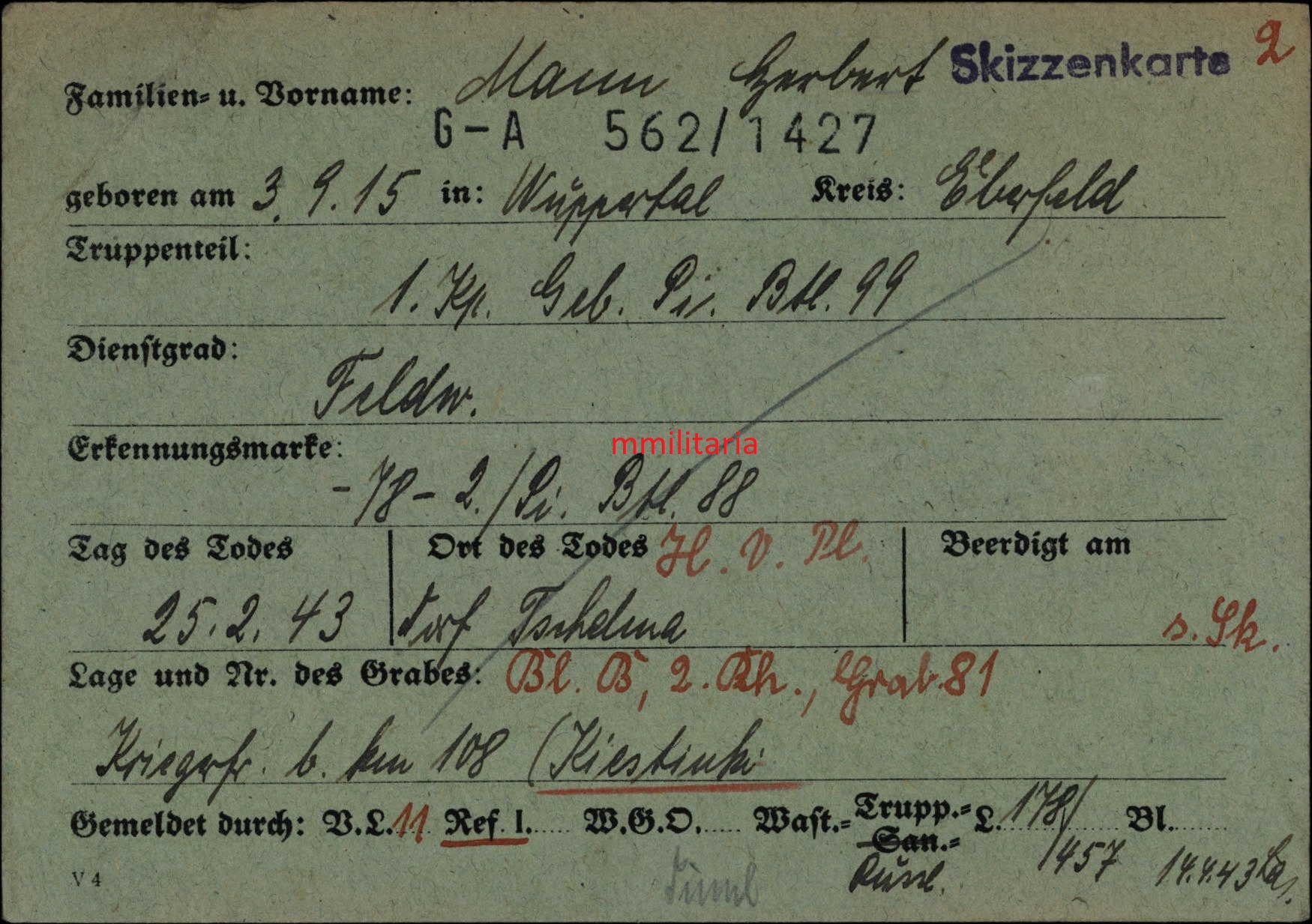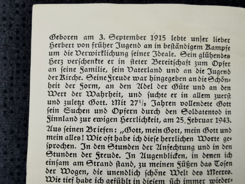 Sterbebild Feldwebel 1. Komp. Geb. Pionier Btl. 99 Kiestinki Finnland