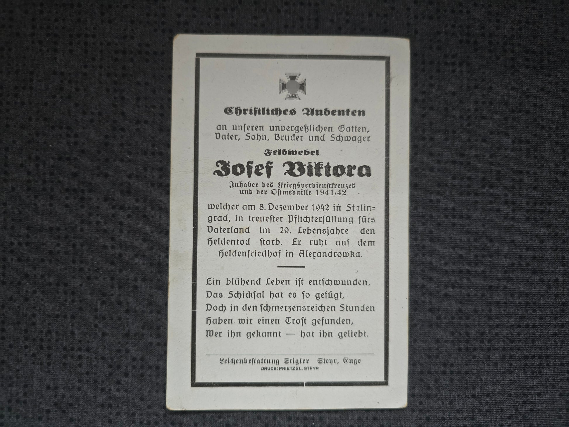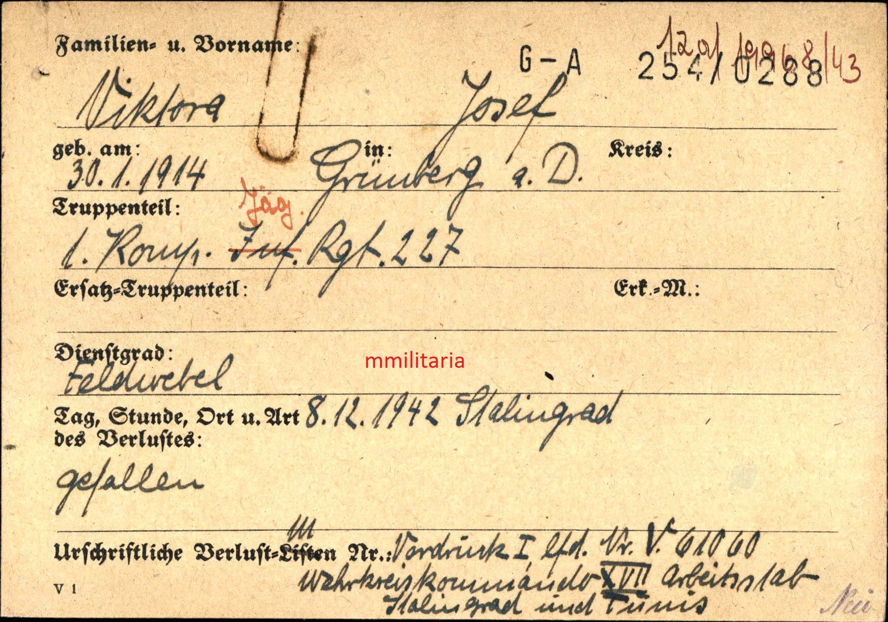 Sterbebild Feldwebel Grünberg 1. Komp. Jäger Regt. 227 Stalingrad Russland