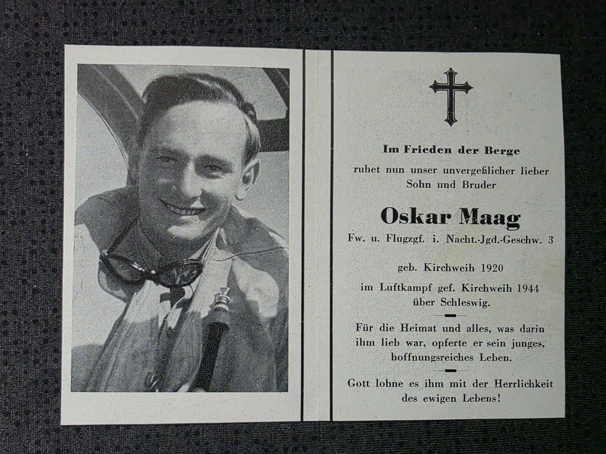 Sterbebild Feldwebel Innsbruck Pilot 1./NJG-3 Bennebeck Schleswig Deutschland