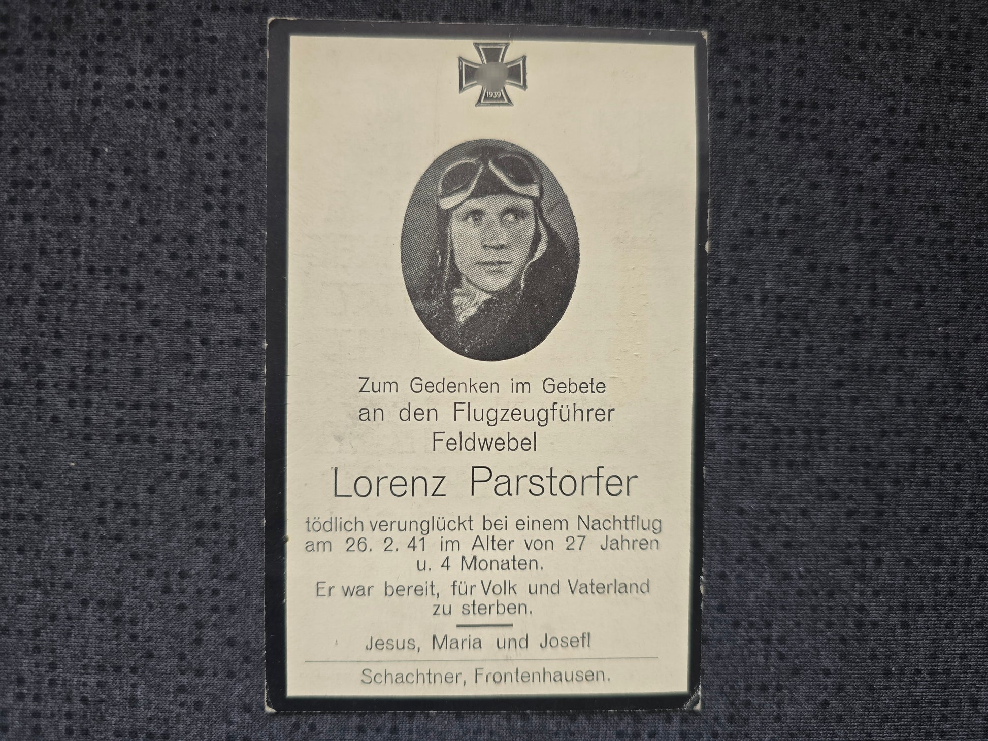 Sterbebild Feldwebel Landshut Nachtflug 1. Gruppe Kampffliegerschule 1 Tutow Pommern