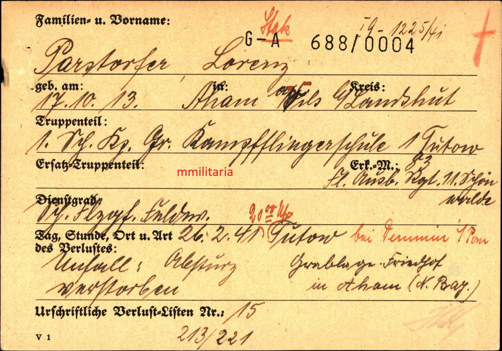 Gestorben am 26.02.1941 bei Demmin / Pommern