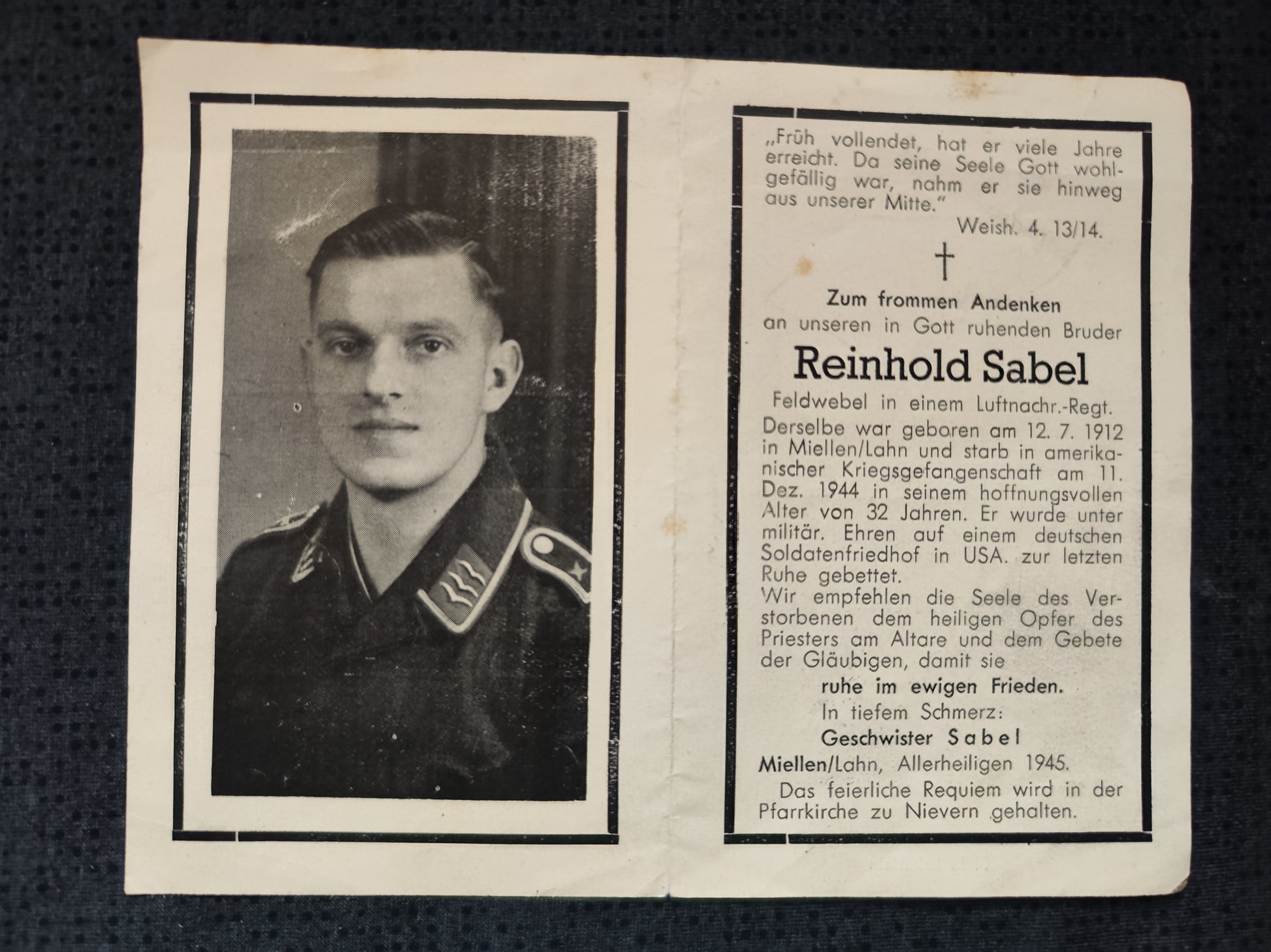 Gest. am 11.12.1944 in Amerikanischer Gefangenschaft