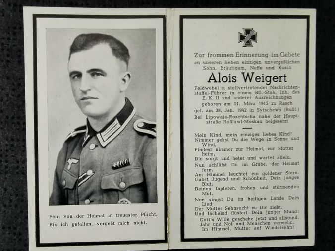 Sterbebild Feldwebel Nachrichten-Staffel-Führer Stab. Kradschützen Btl. 40 Sytschewo Russland