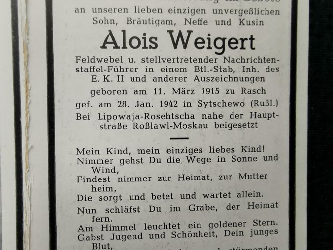 Gefallen am 28.01.1942 in Sytschewo (Russland)