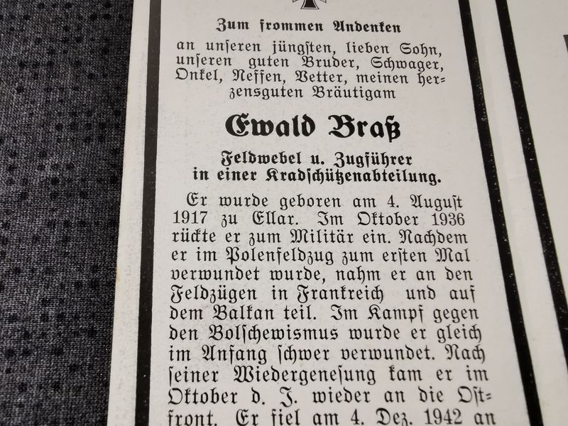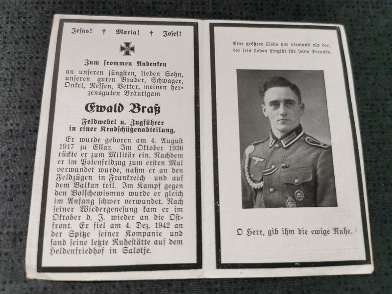 Sterbebild Feldwebel & Zugführer 2. Kradschützen Btl. 8 Haschkino Russland