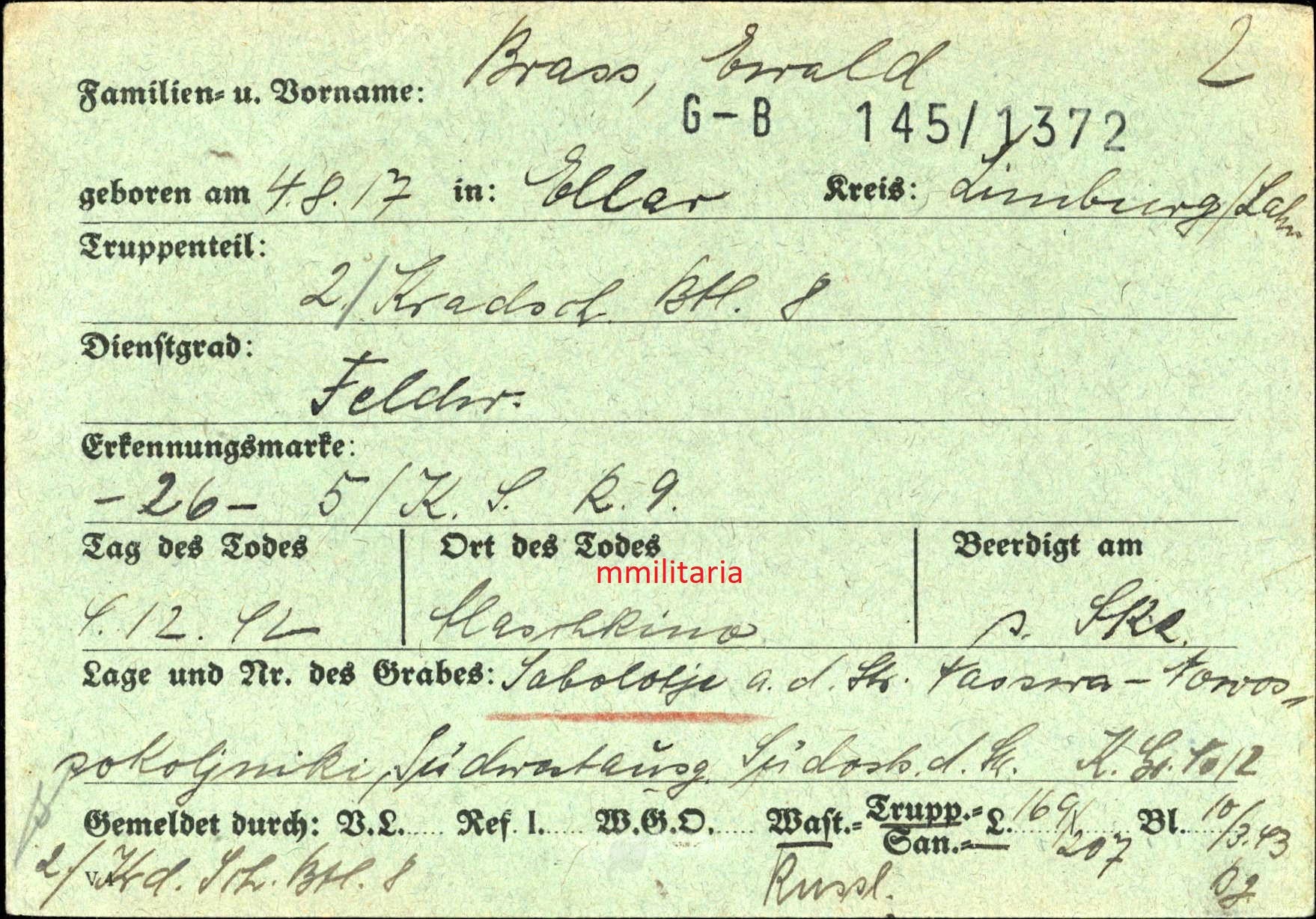 Gefallen am 04.12.1942 in Haschkino (Russland)