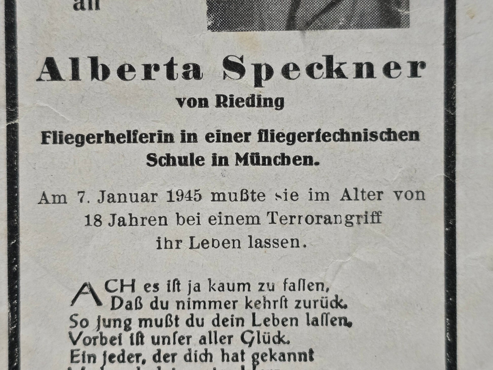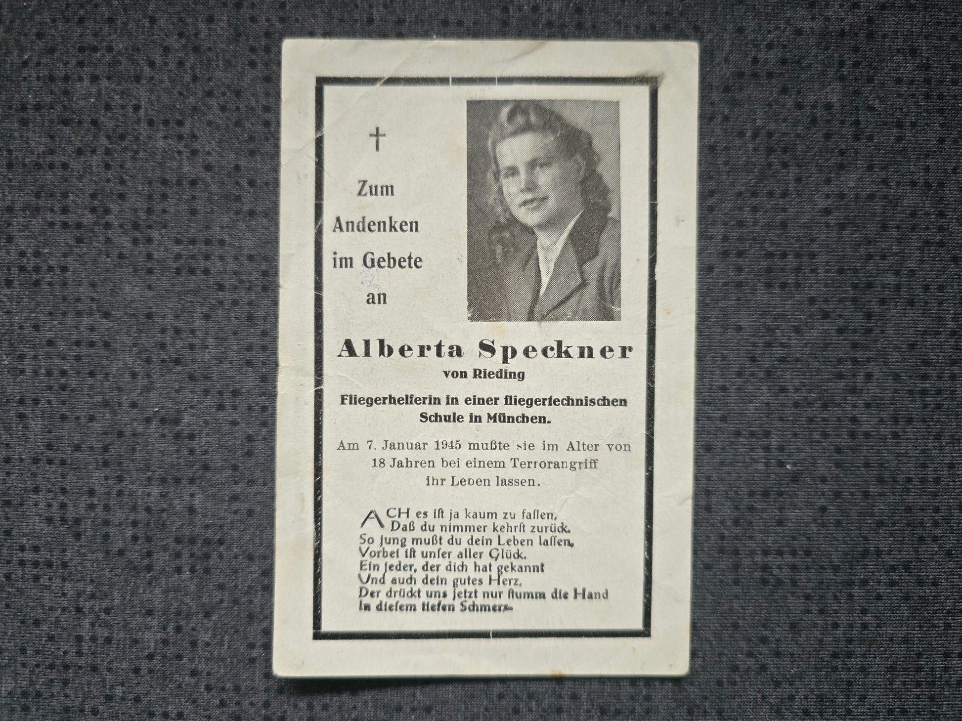 Sterbebild Fliegerhelferin Rieding Technische Schule Endkampf Terrorangriff München