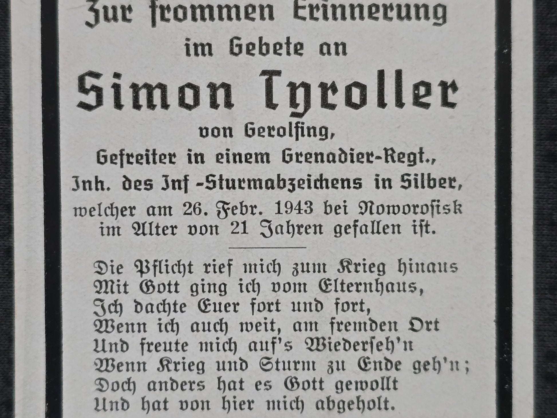 Sterbebild + Foto Gefreiter Gerolfing Grenadier Regt. Noworossisk Russland Grabfoto