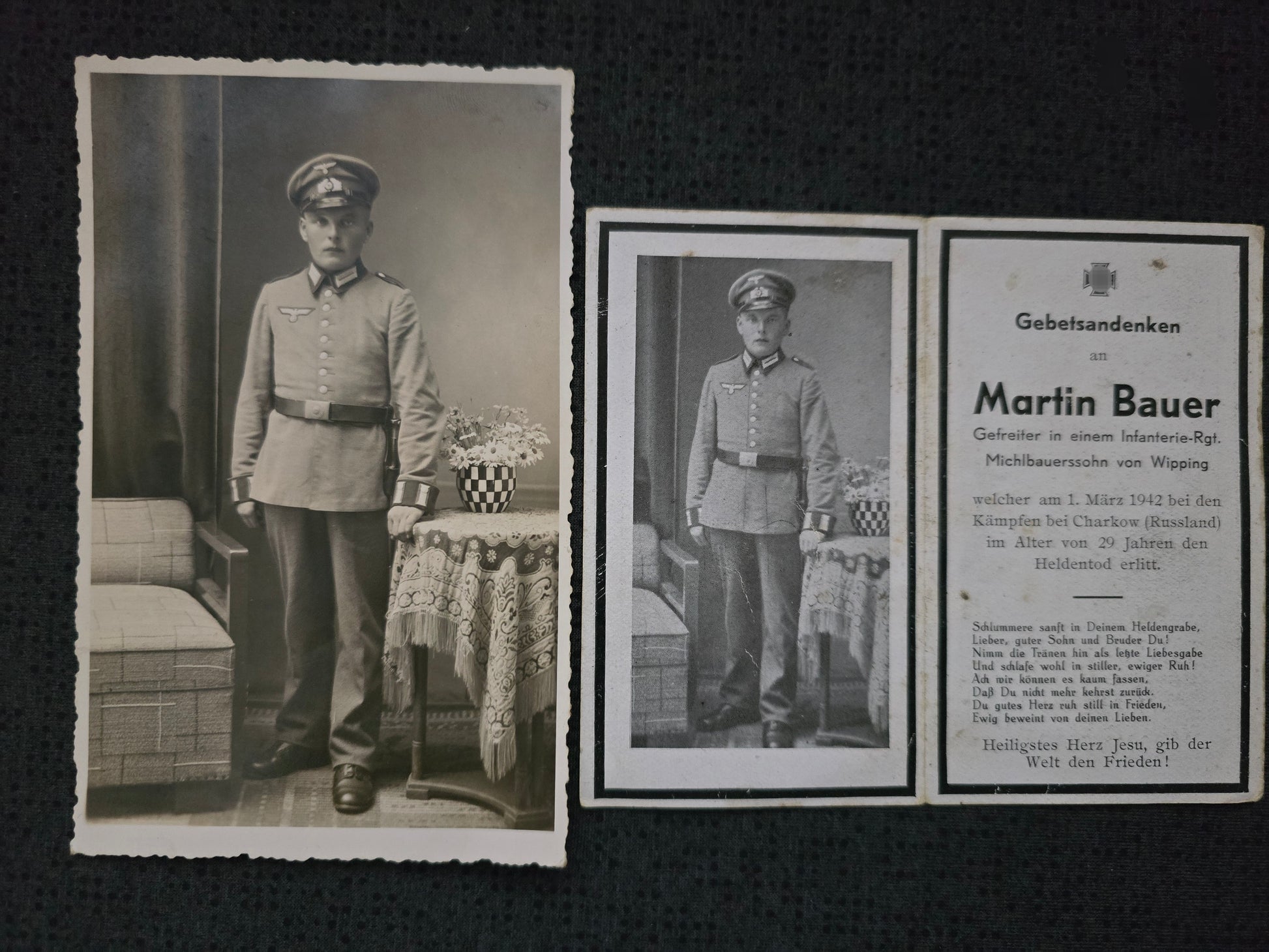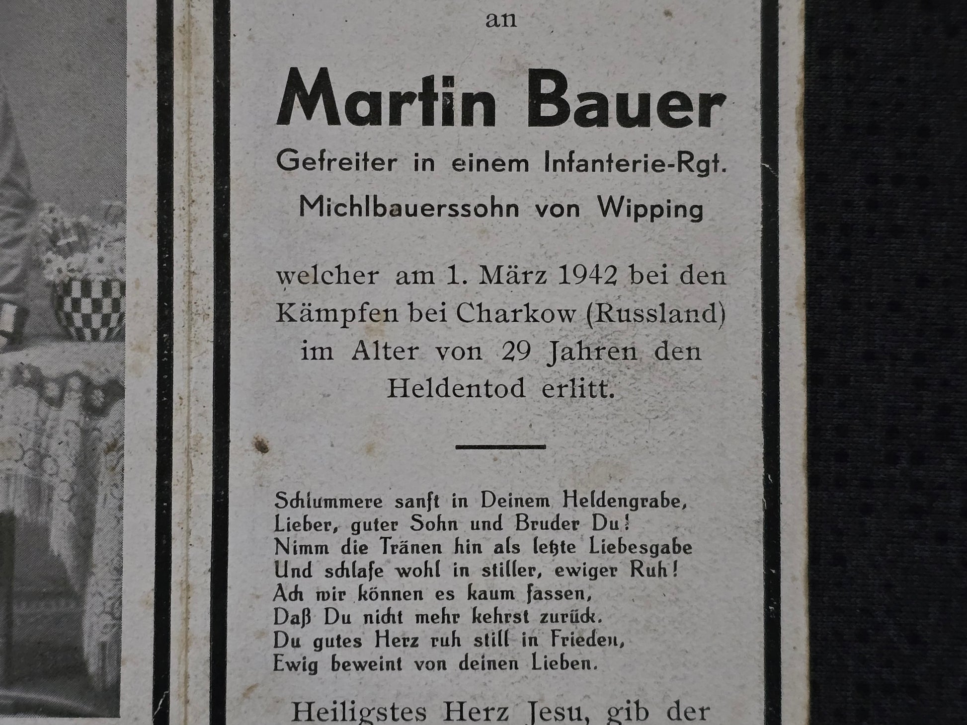 Sterbebild + Foto Portrait Gefreiter Wipping 11. Inf. Regt. 179 Ligowka Charkow Ukraine