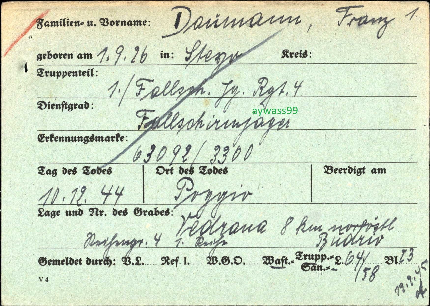 Gefallen am 10.12.1944 bei Poggio (Italien)