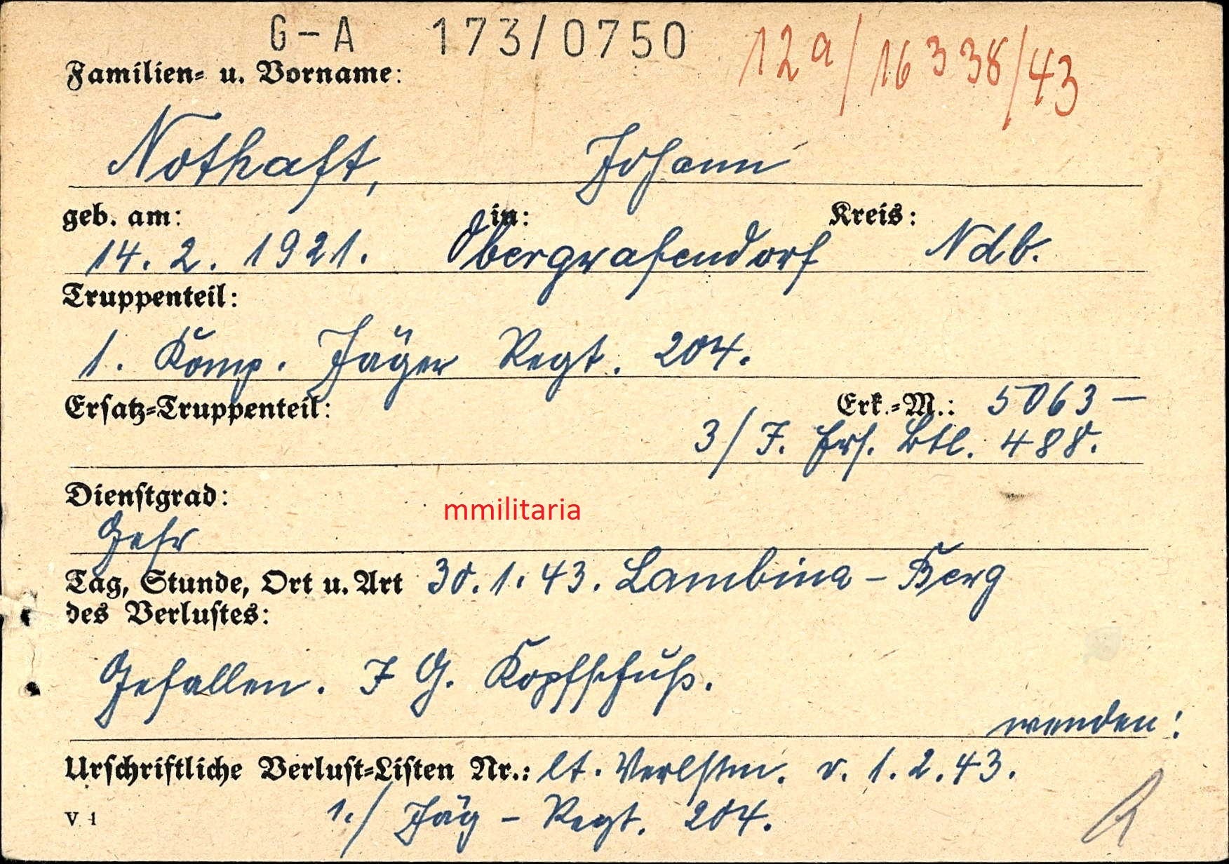 Gefallen am 30.01.1943 im Kaukasus (Russland)