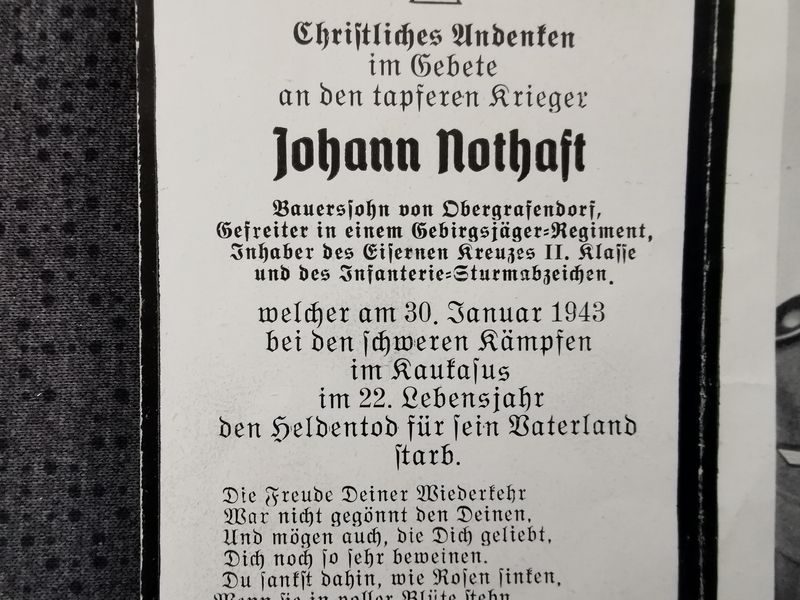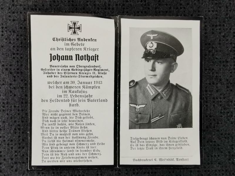 Sterbebild Gefreiter 1. Komp. Jäger Regt. 204 EK II ISA Lambina-Berg Kaukasus Russland