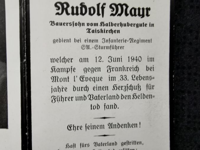 Sterbebild Gefreiter 11. Inf. Regt. 134 SA-Sturmführer Mont l`Eveque Fort-de-Malmaison Frankreich