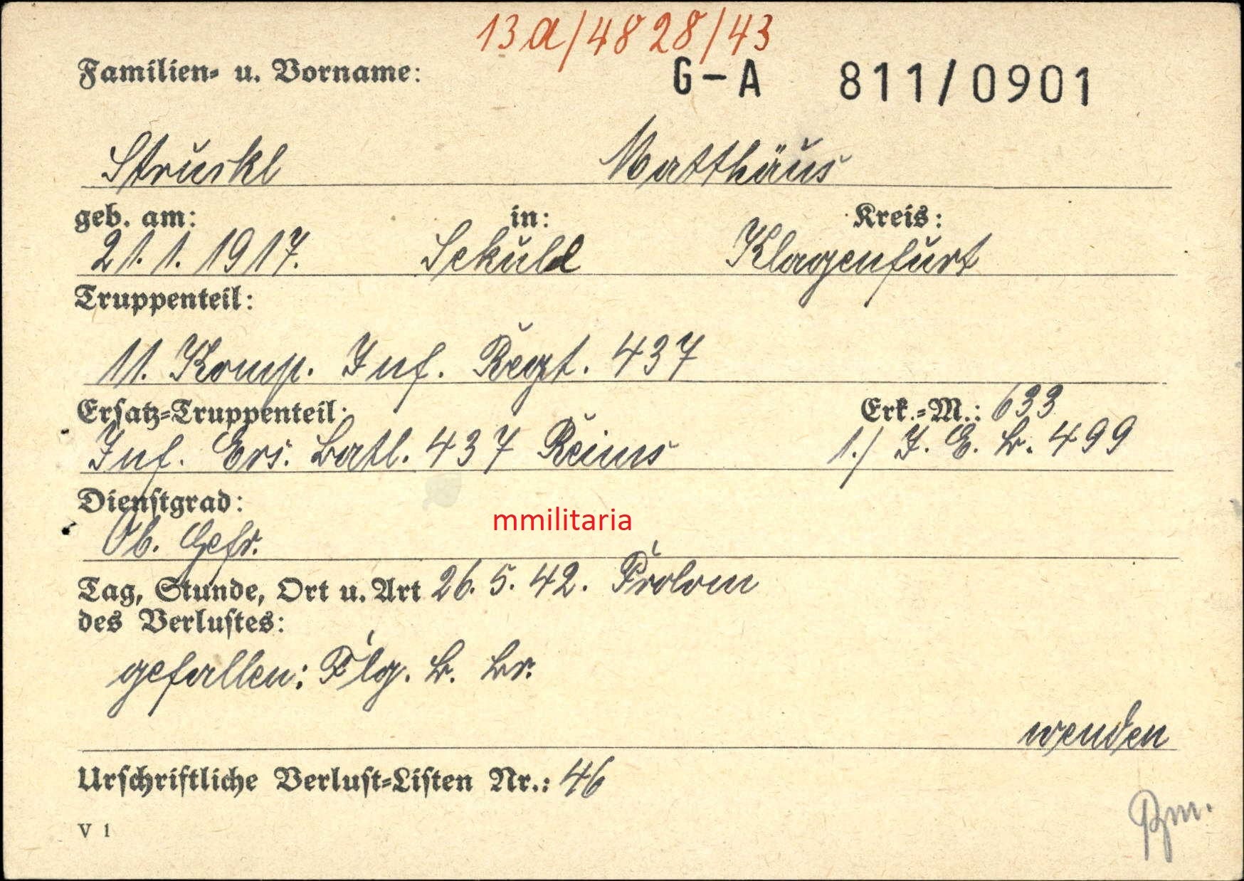 Gefallen am 26.05.1942 bei Prolom/Krim