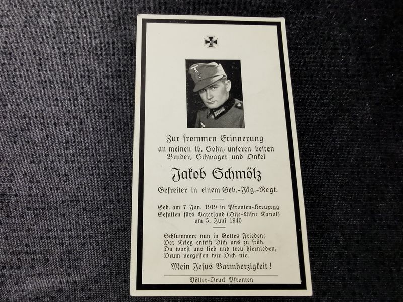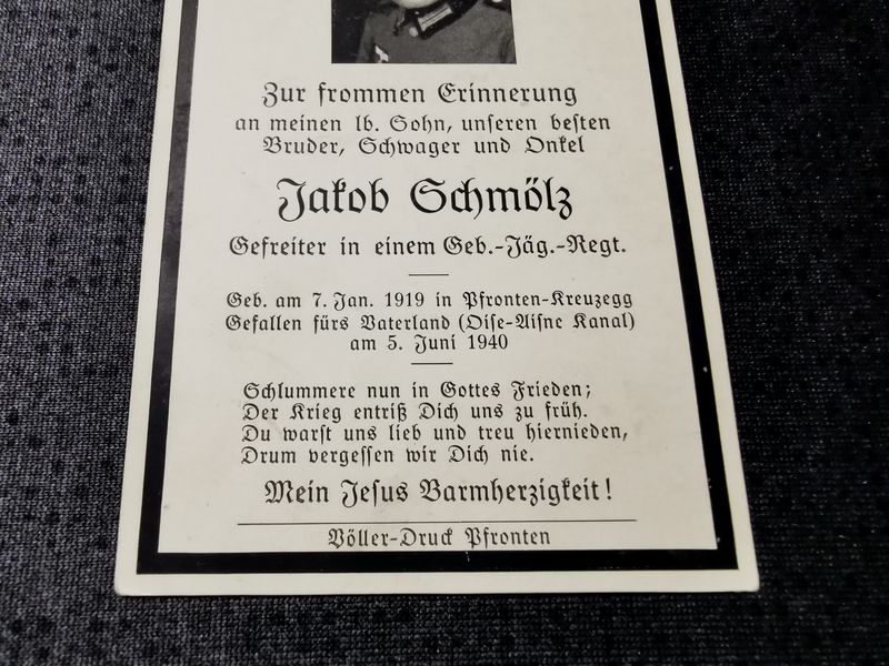 Sterbebild Gefreiter 13. Komp. Geb. Jäger Regt. 99 Oise-Aisne-Kanal Fort-de-Malmaison Frankreich