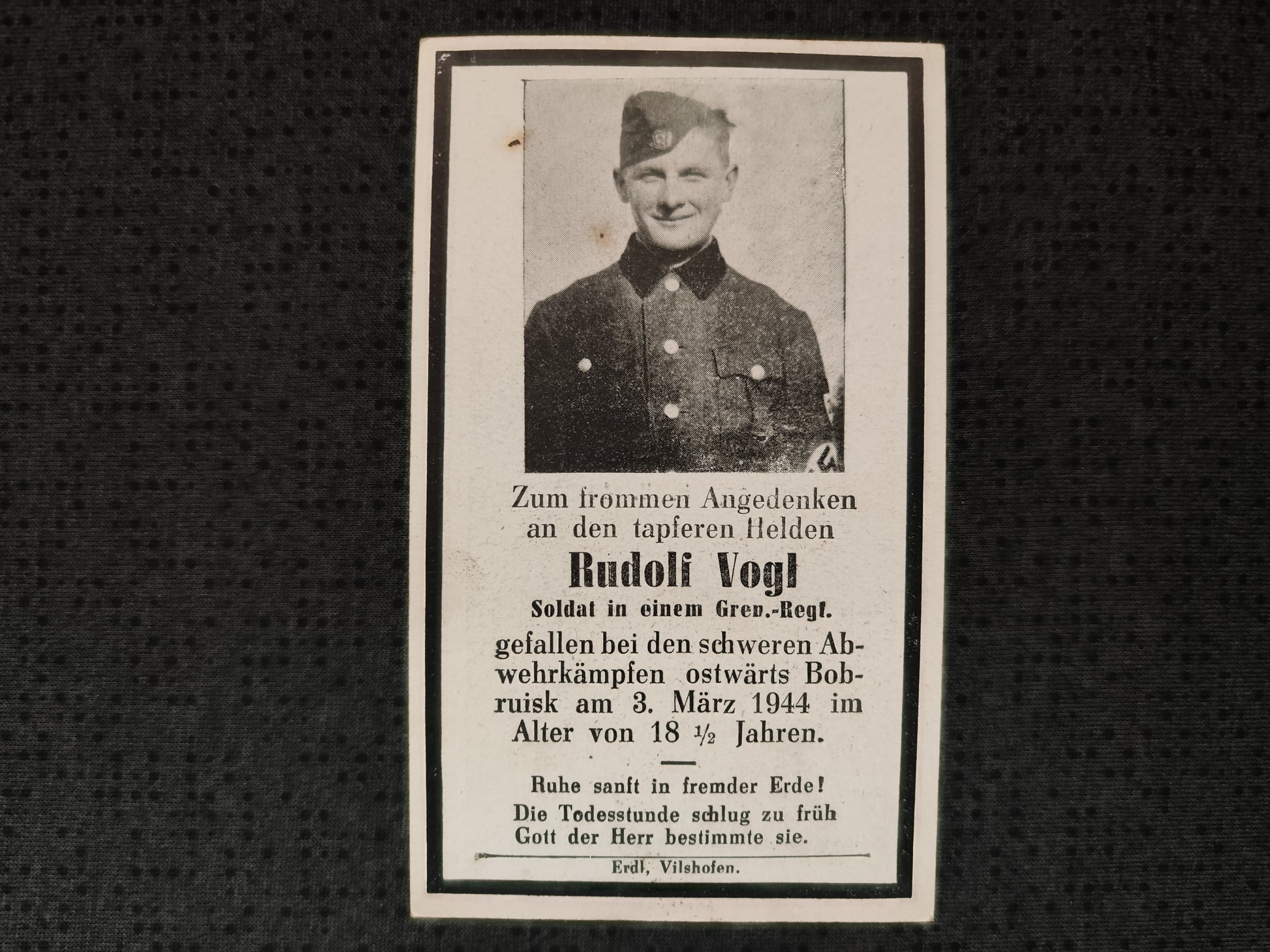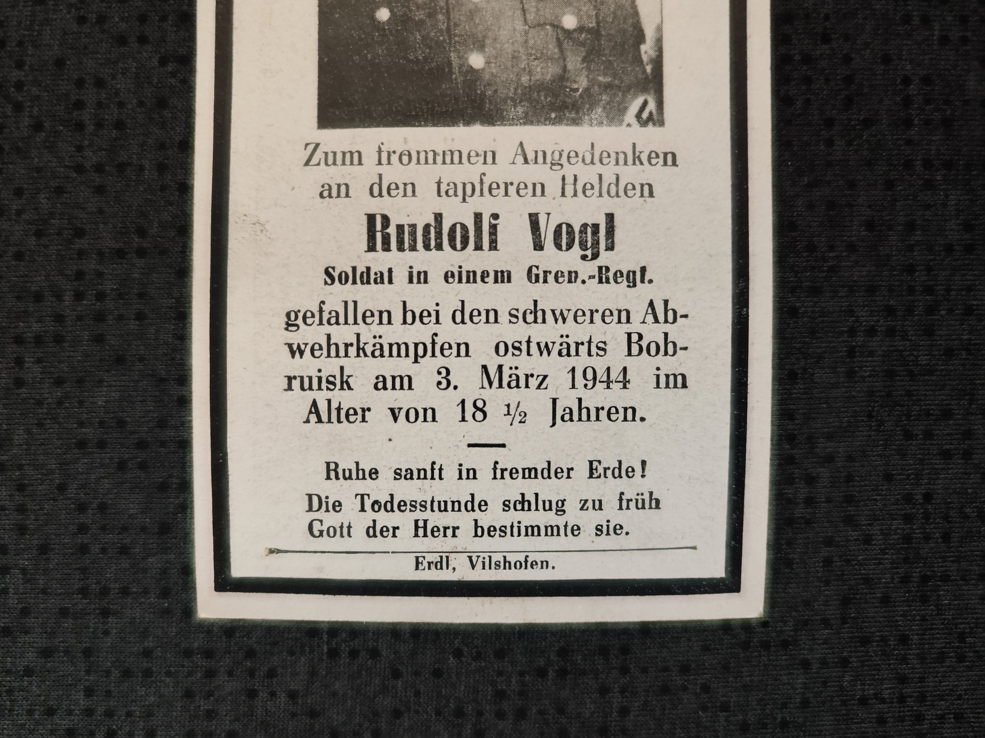 Sterbebild Gefreiter 2. Komp. Gren. Regt. 62 Vilshofen Bobruisk Weissrussland