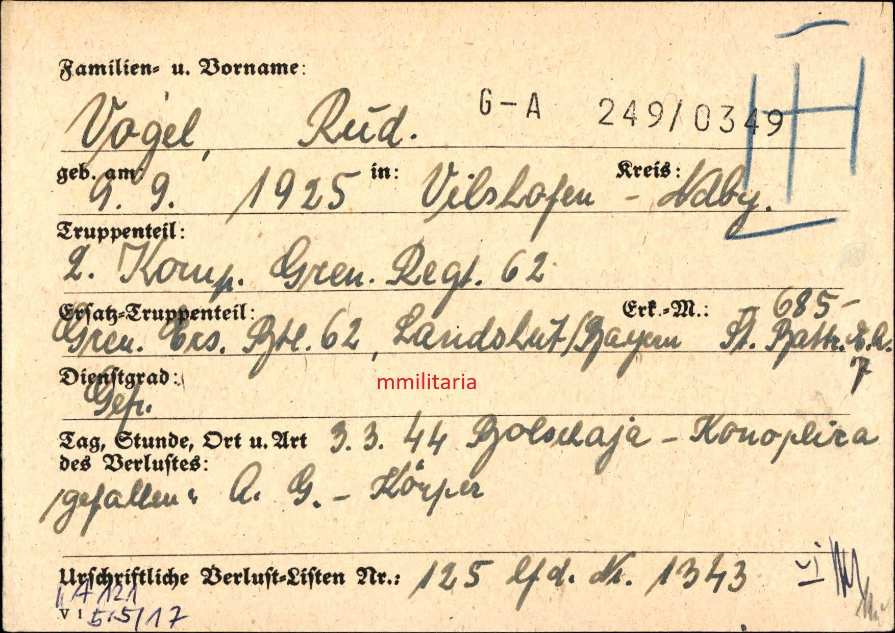 Gefallen am 03.03.1944 bei Bobruisk (Weissrussland/Belaruss)