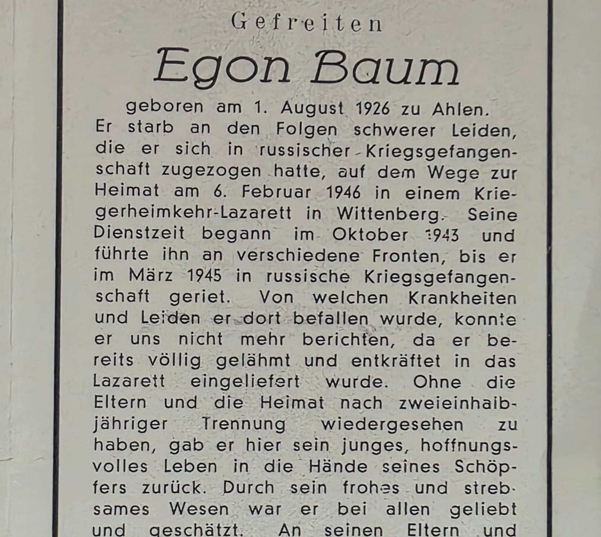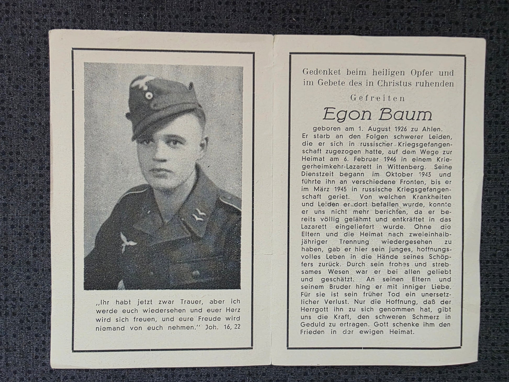 Sterbebild Gefreiter Ahlen Kriegerheimkehrer-Lazarett Wittenberg