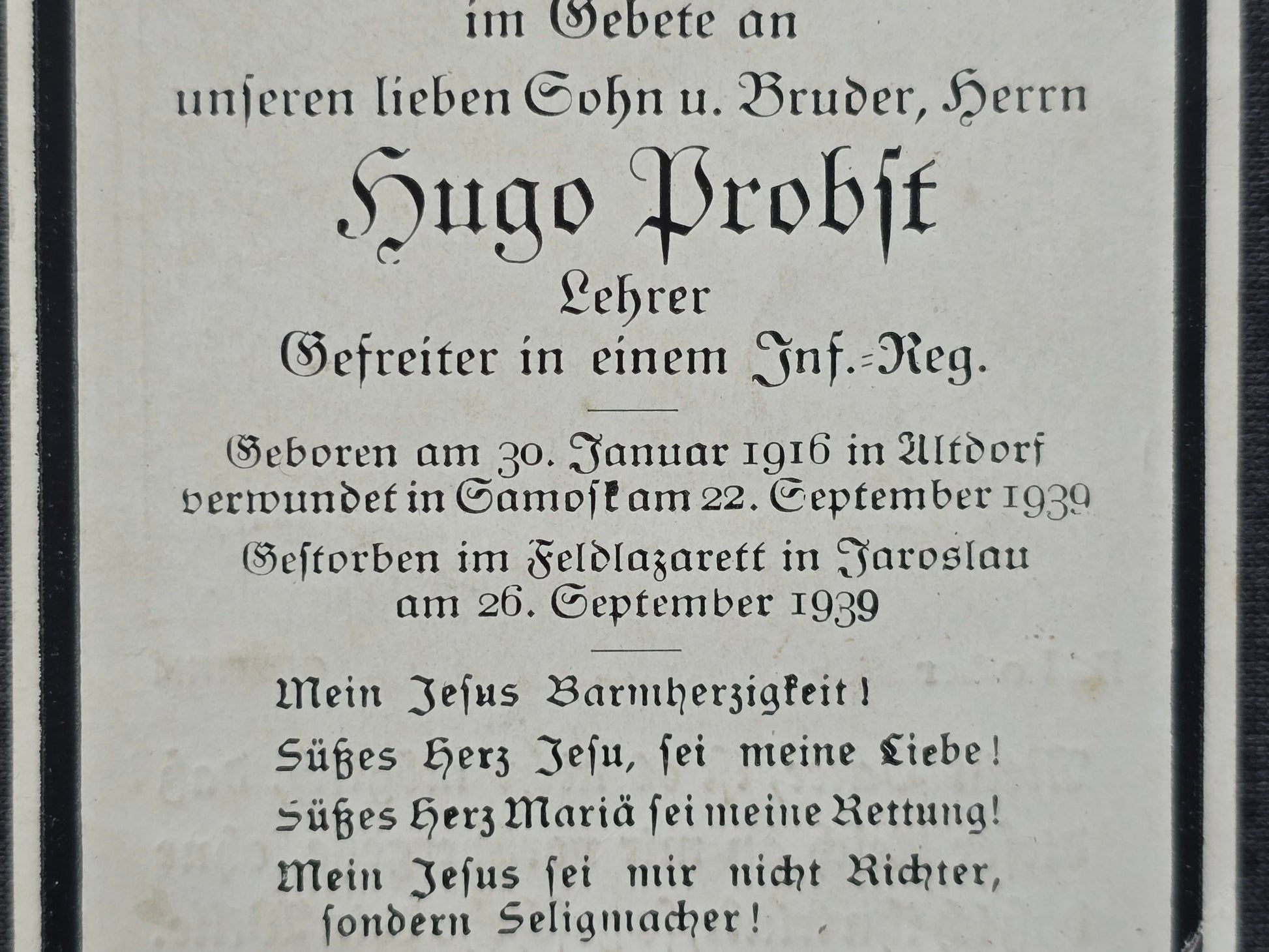 Sterbebild Gefreiter Altdorf Infanterie Regt. Labunic Siemianowice Śląskie Polen 1939