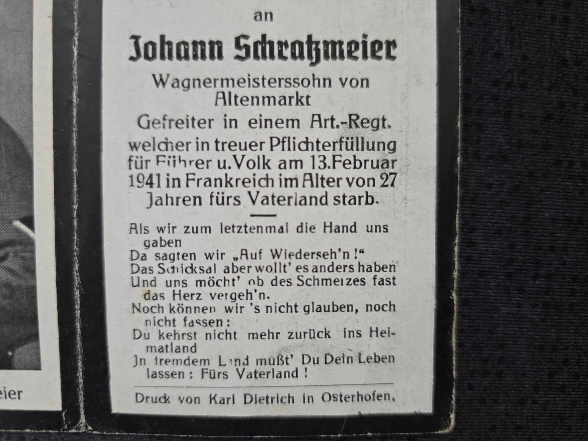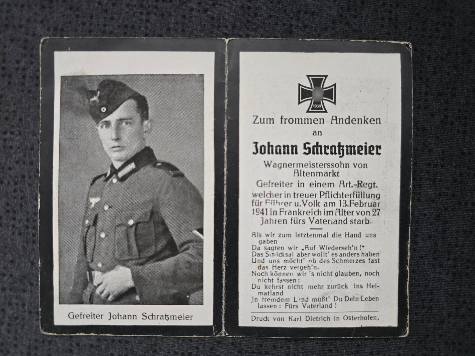 Sterbebild Gefreiter Altenmarkt 3. Art. Regt. 43 Ypern Belgien Bourdon Frankreich