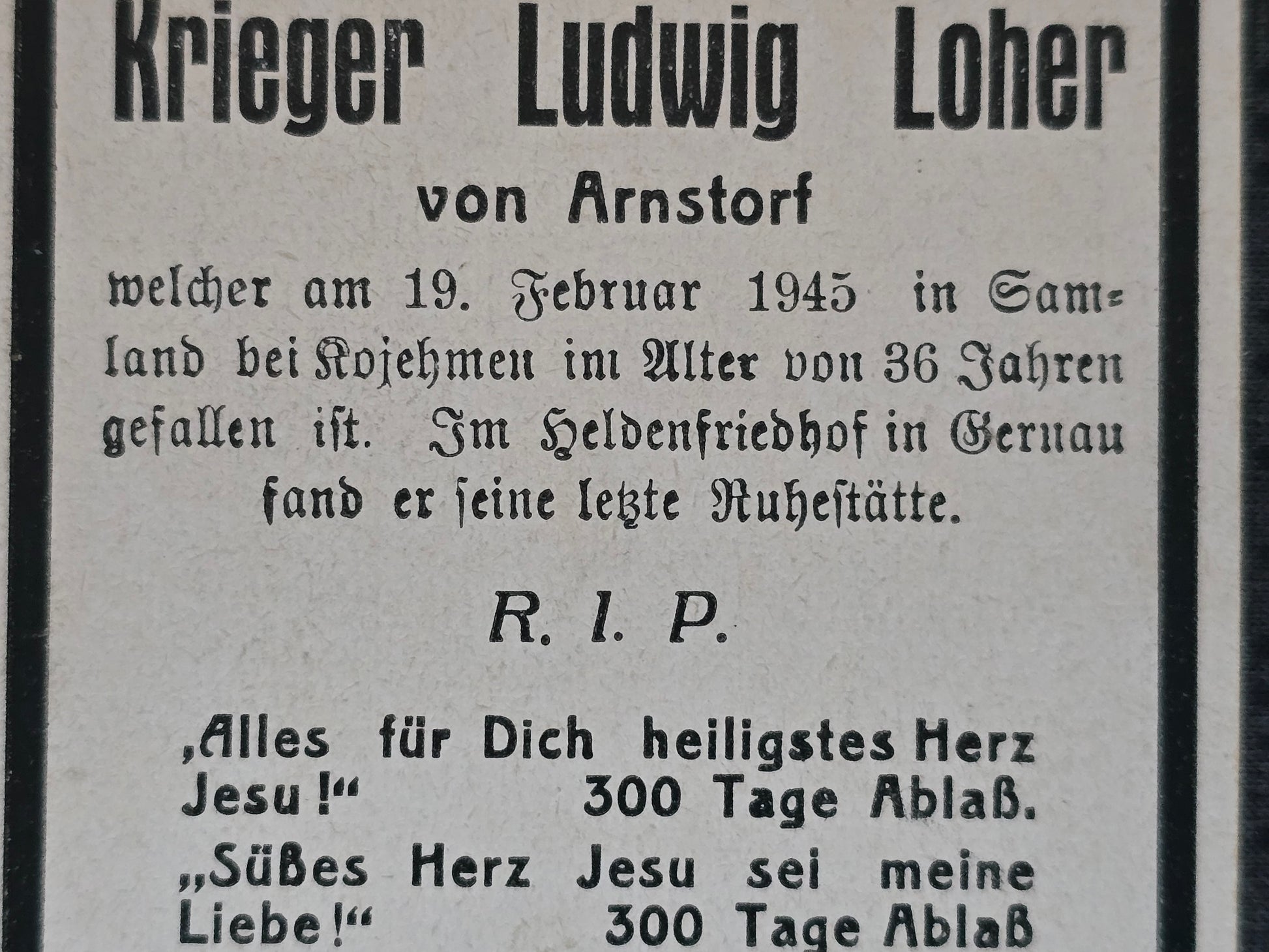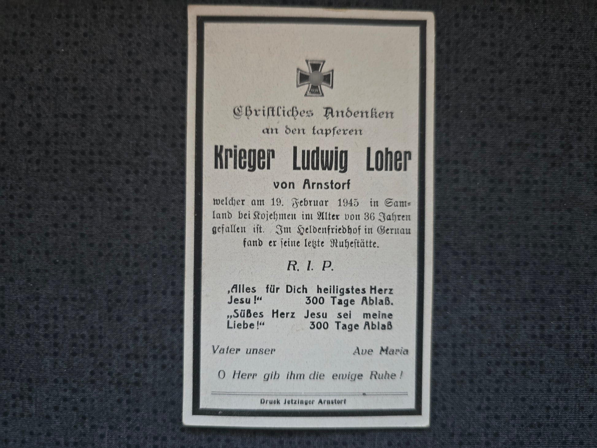 Sterbebild Gefreiter Arnstorf Endkampf Samland Kojehnen Kaliningrad Russland
