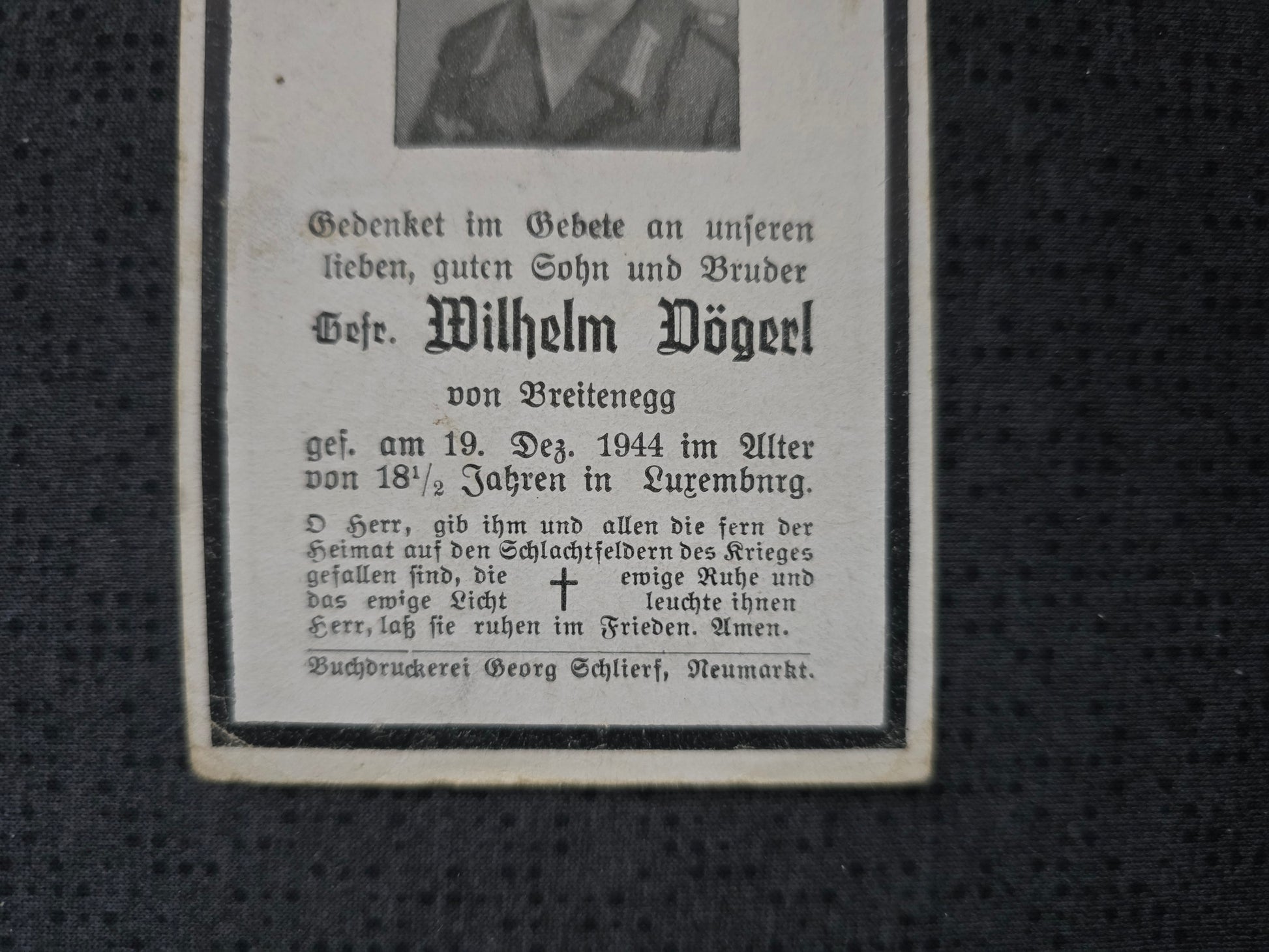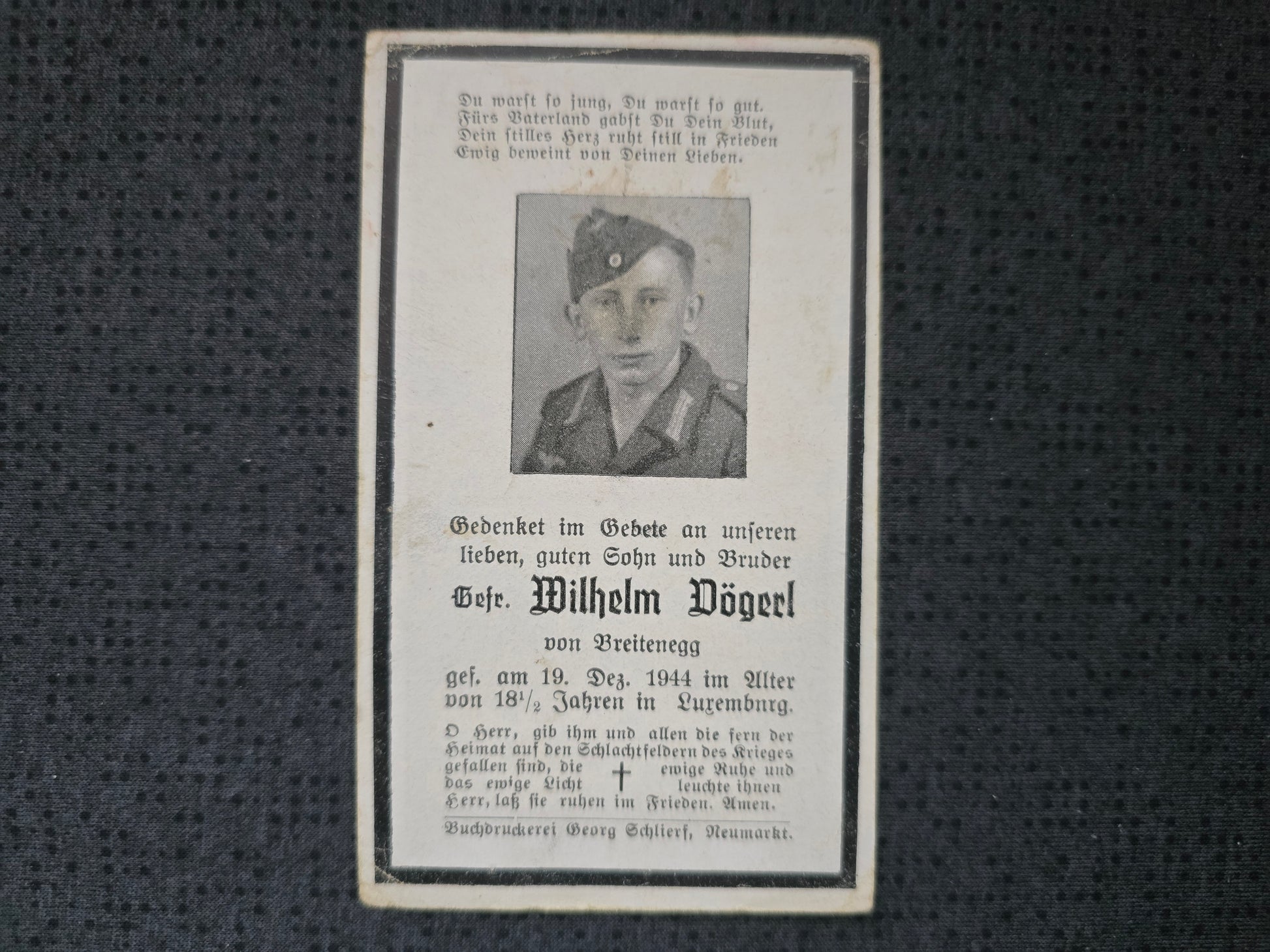 Sterbebild Gefreiter Breitenegg 18 Jahre Ardennen Luxemburg Helenenberg Trier-Saarburg