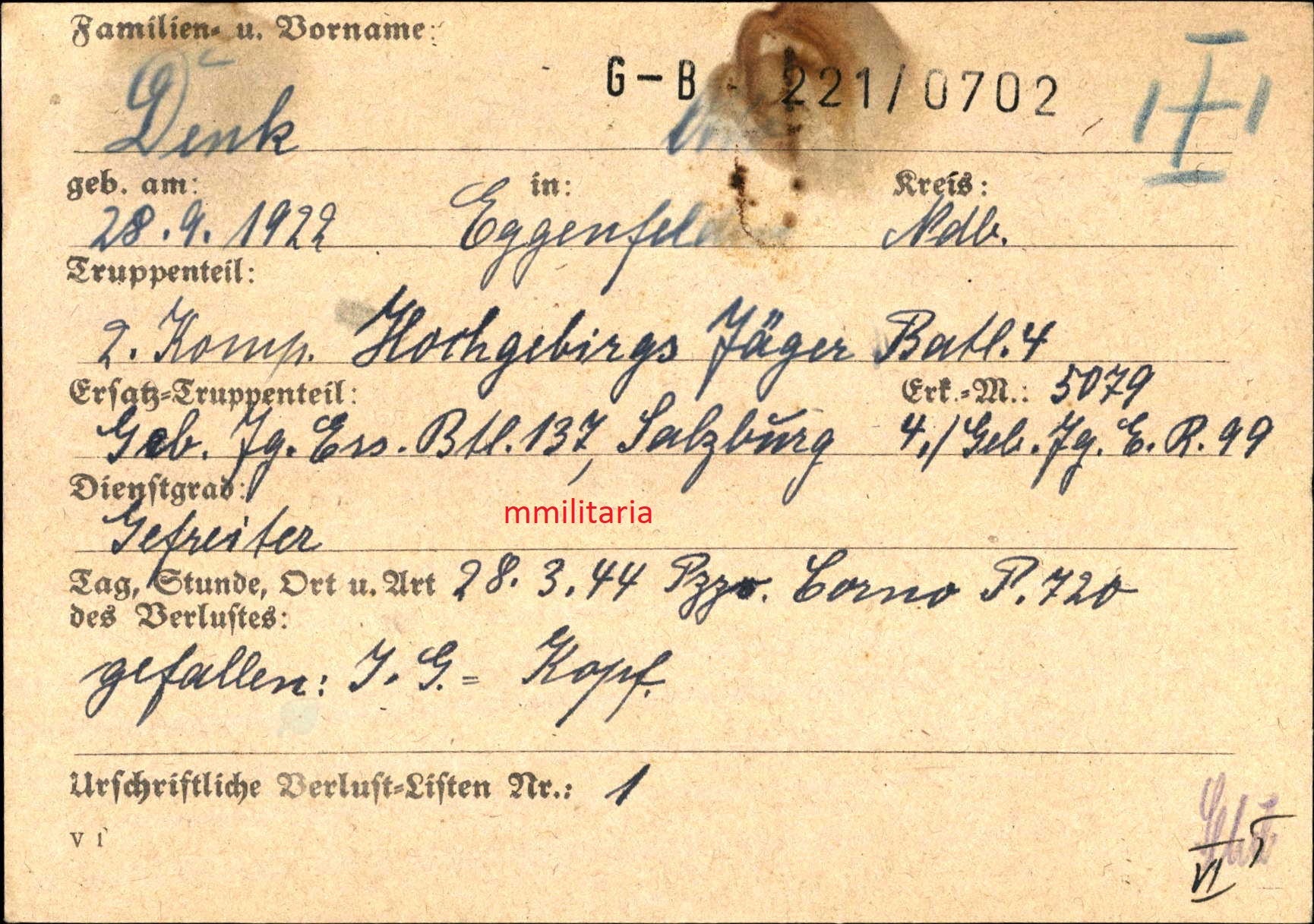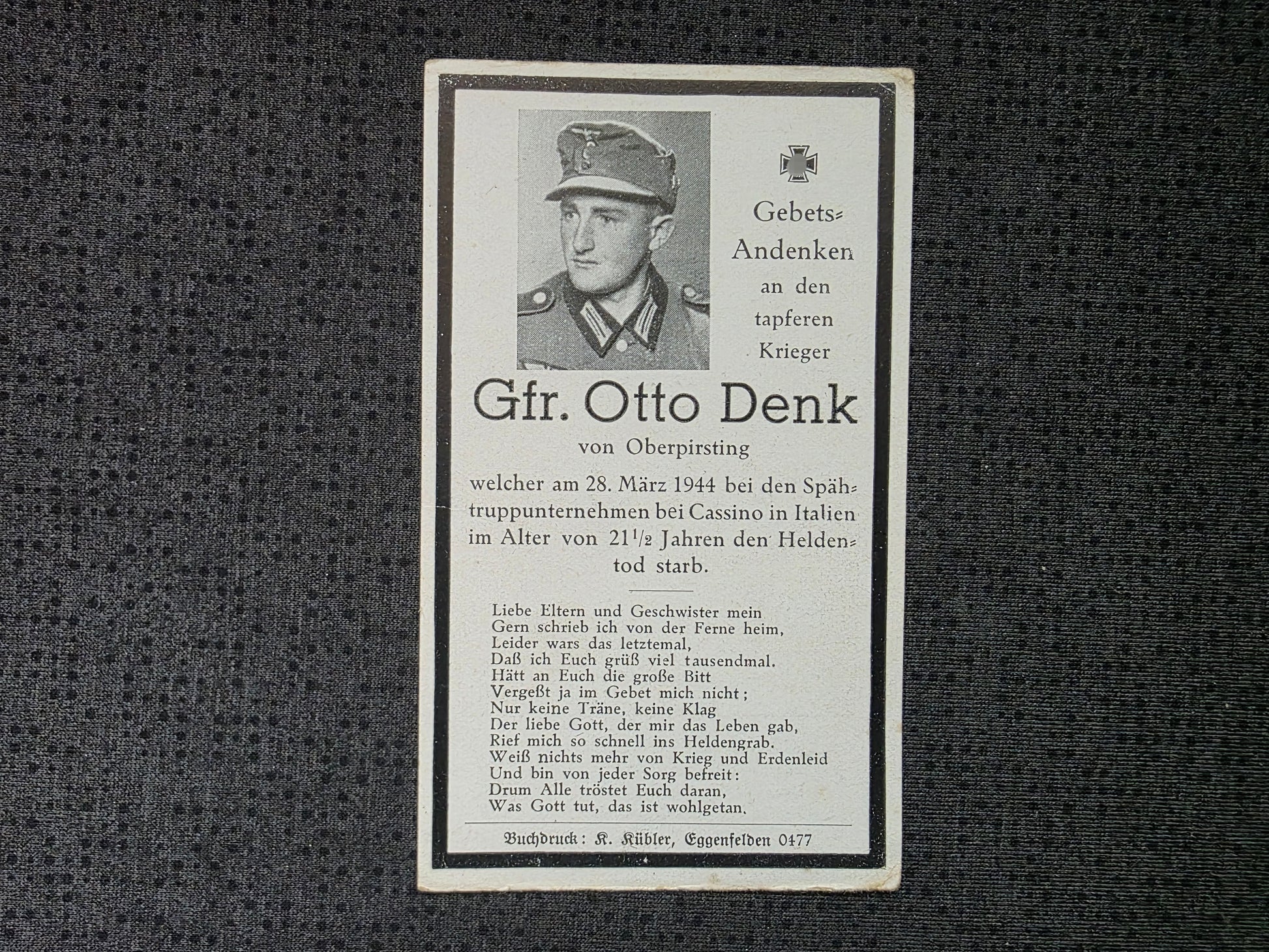 Sterbebild Gefreiter Eggenfelden 2. Komp. Hochgebirgs-Jäger Btl. 4 Cassino Italien