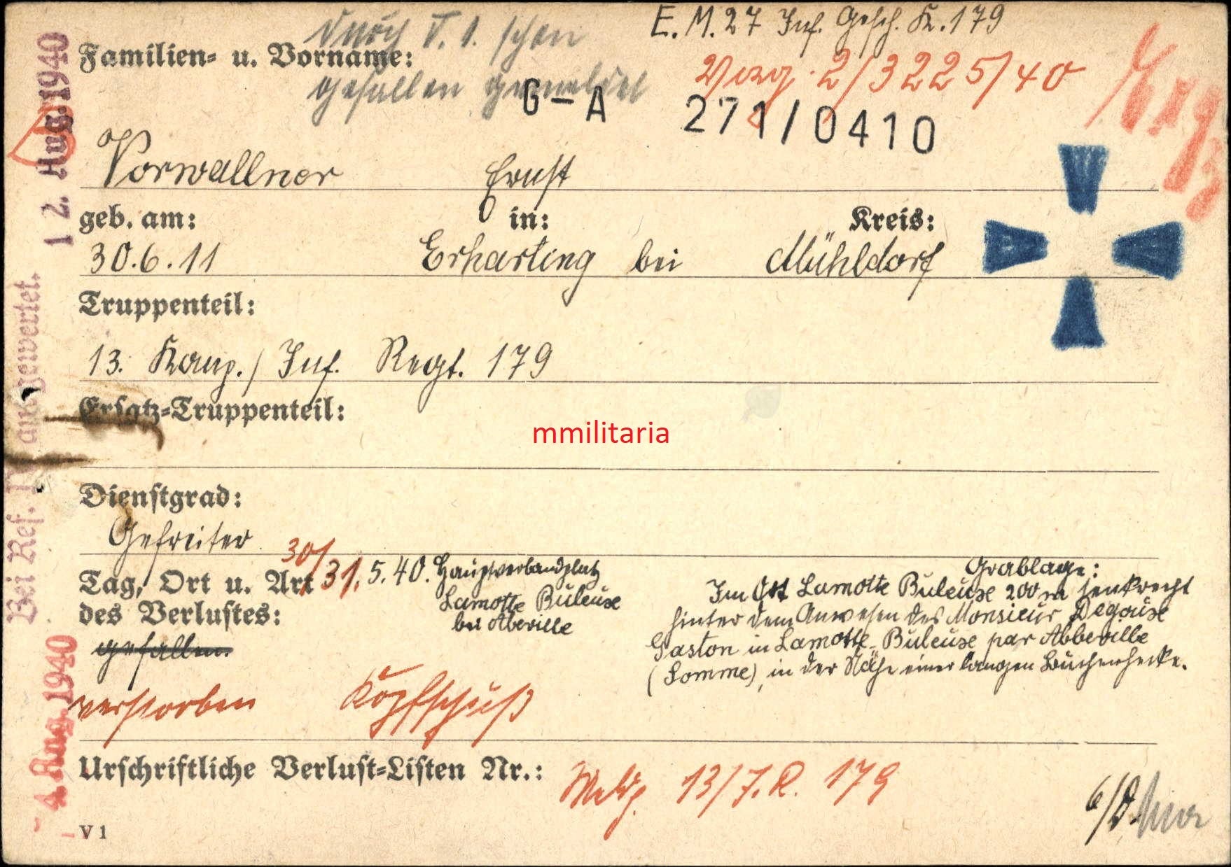 Gefallen am 31.05.1940 bei Abbeville (Frankreich)