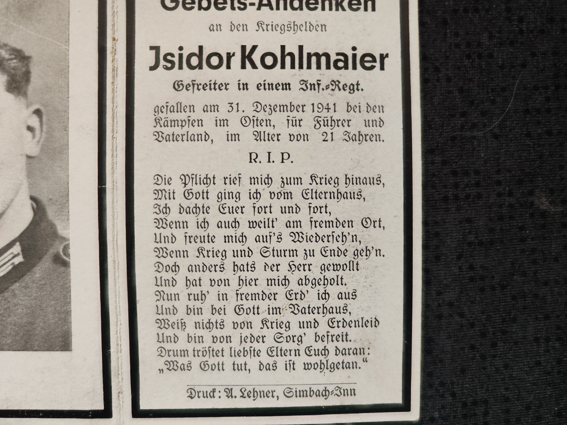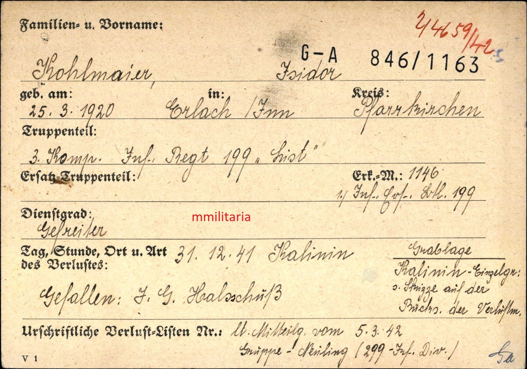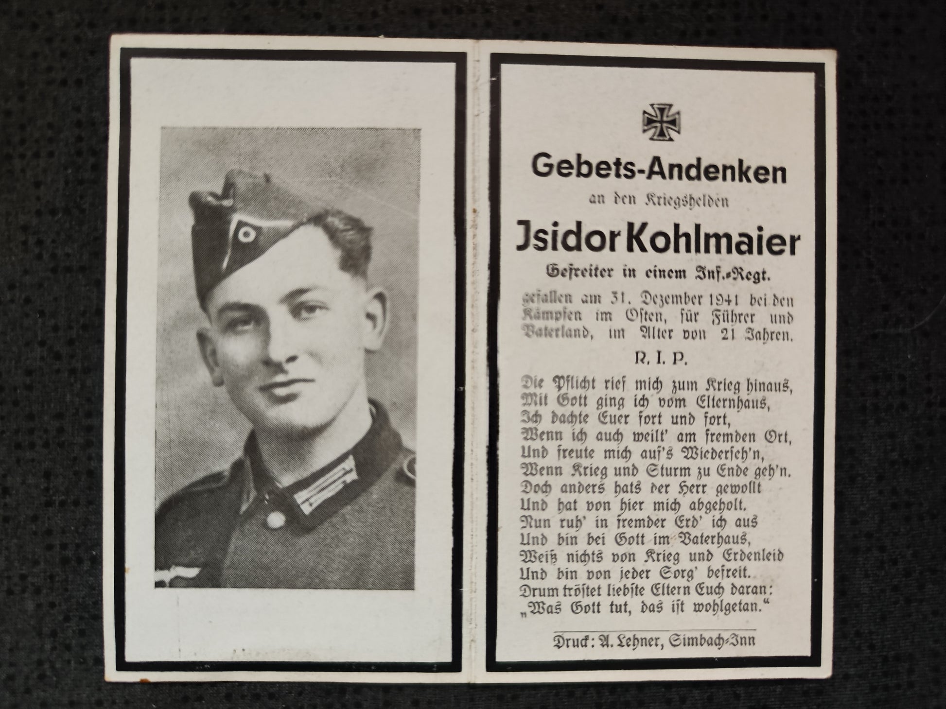 Sterbebild Gefreiter Erlach am Inn 3. Komp. Inf. Regt. 199 "List" Kalinin Kursk Russland