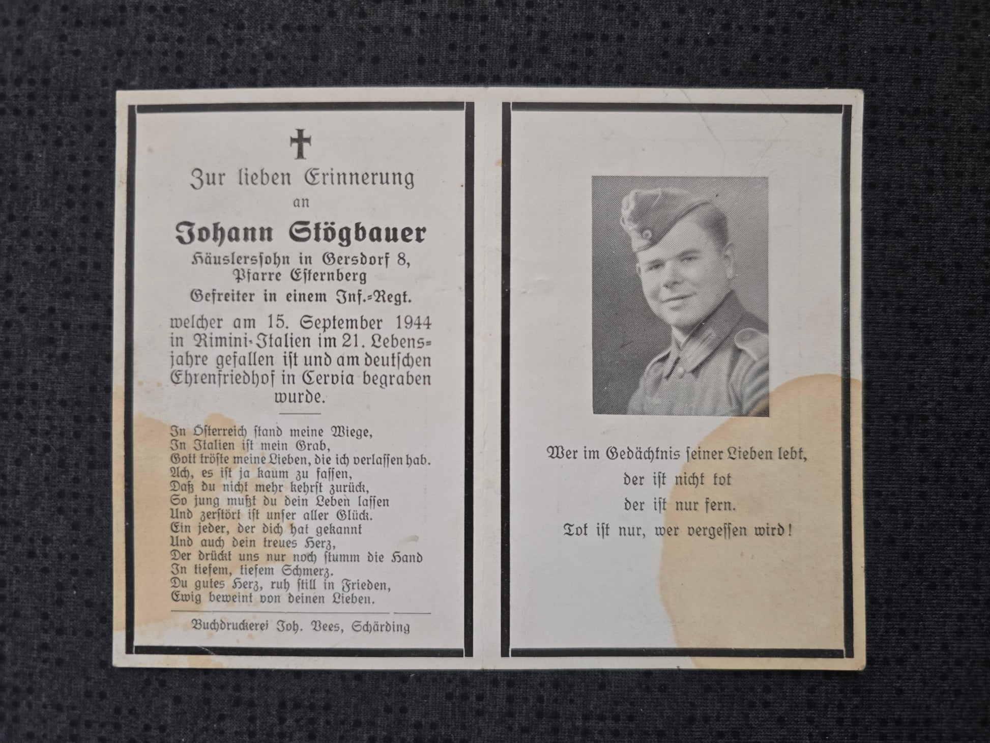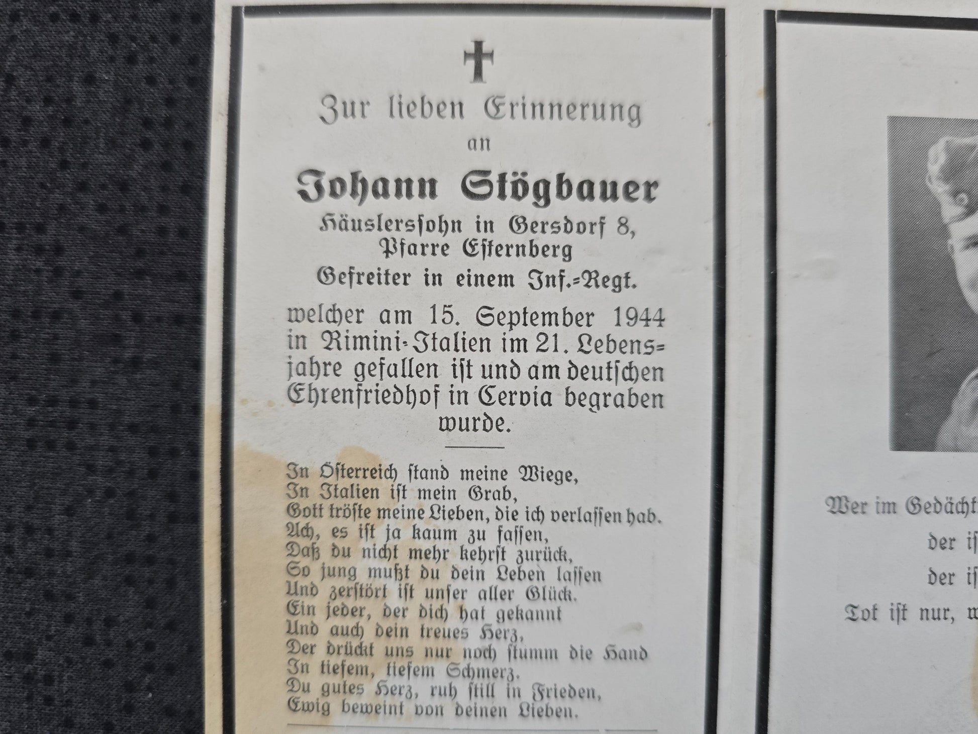 Gefallen am 15.09.1944 in Rimini (Italien)