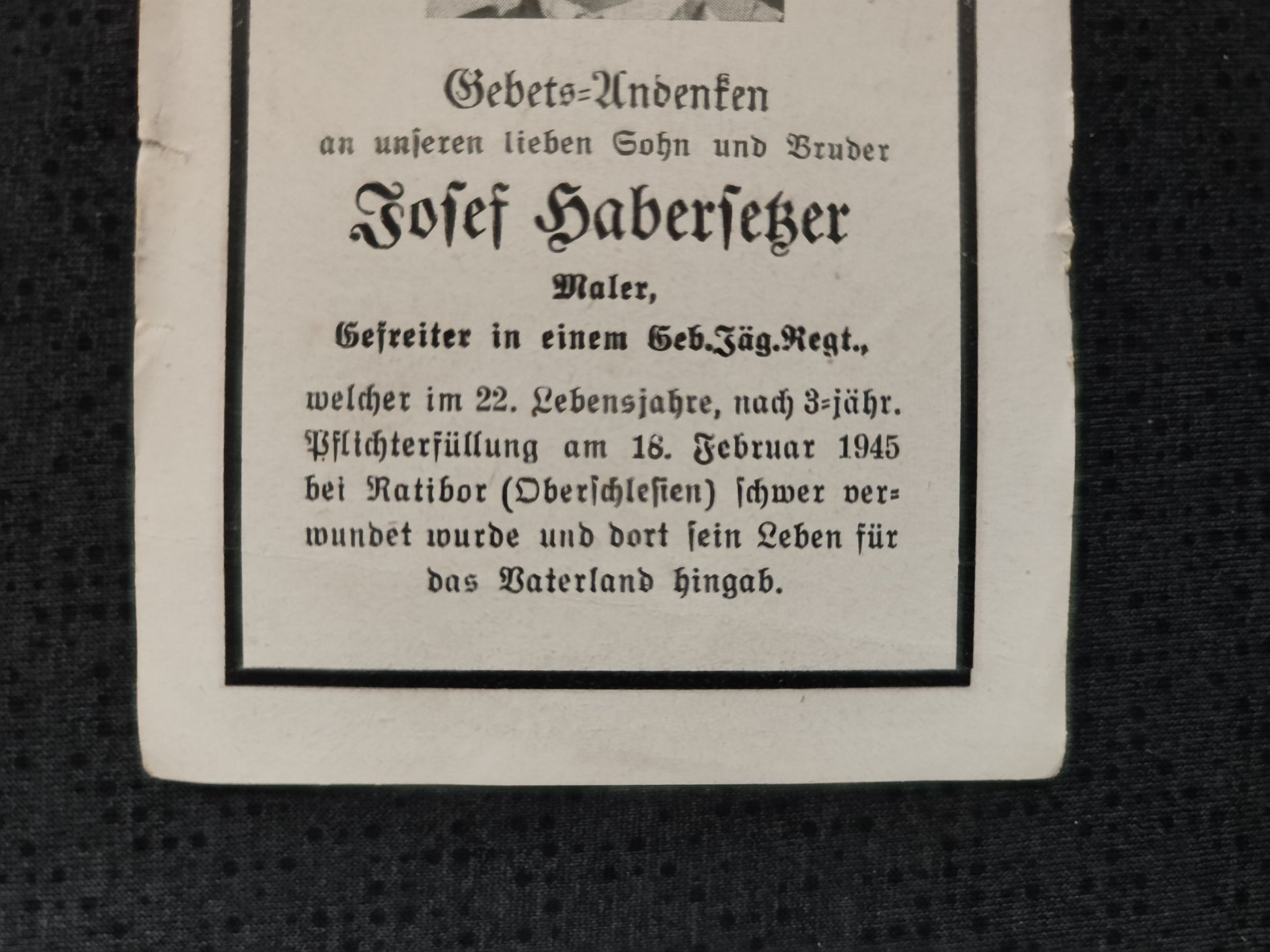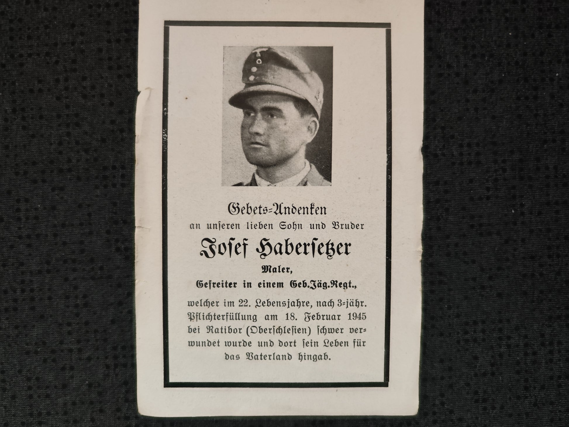 Sterbebild Gefreiter Freilassing Gebirgsjäger Regt. Endkampf Pawlau Ratibor Oberschlesien Polen