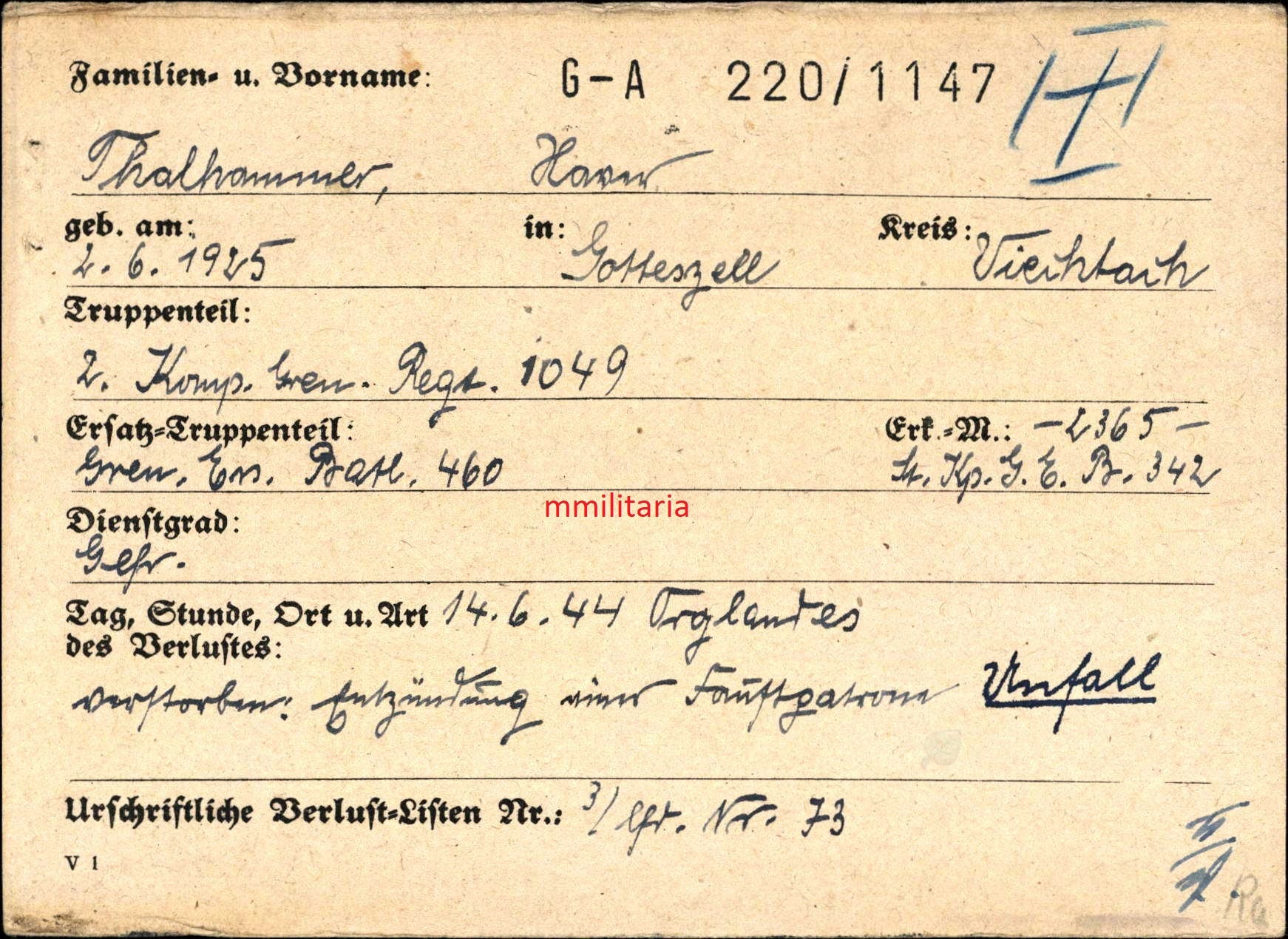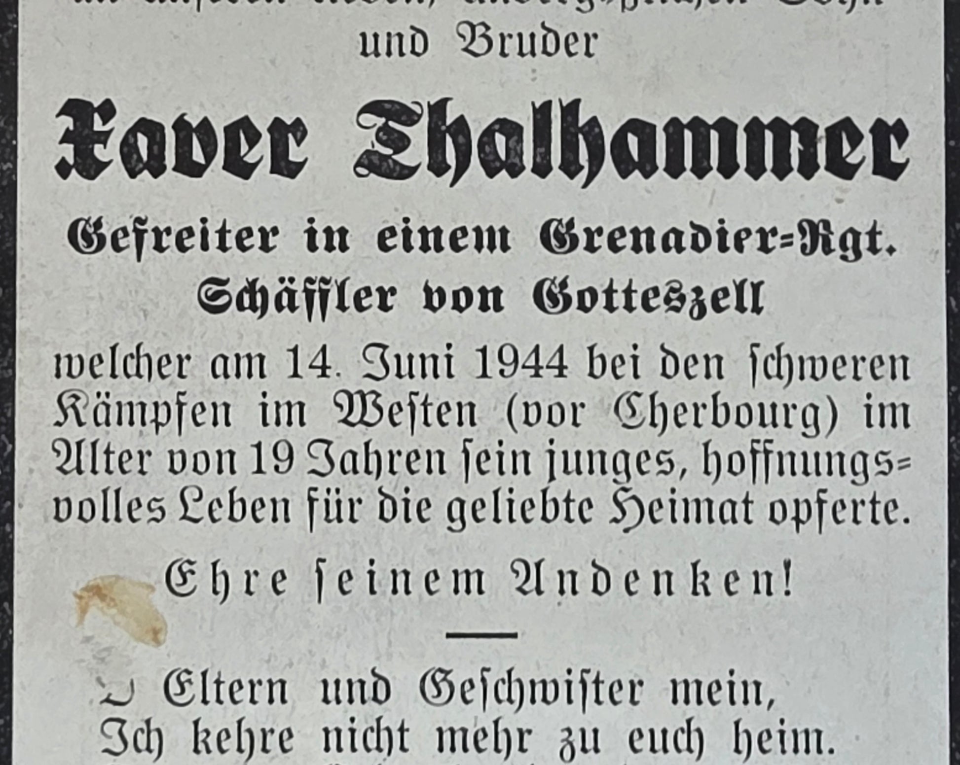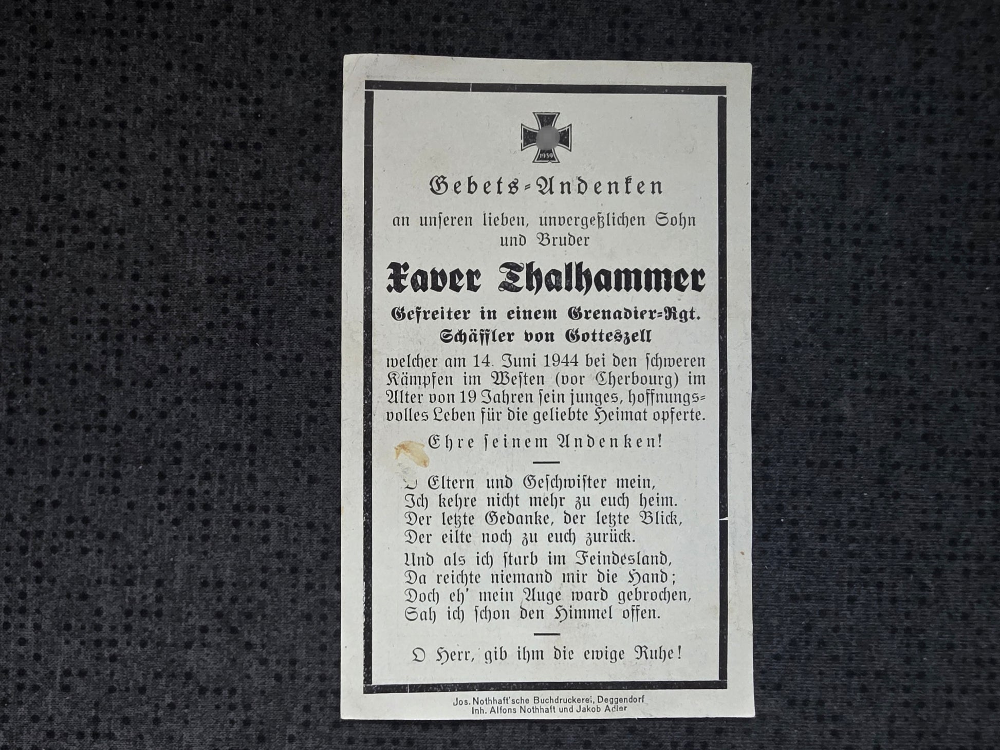 Sterbebild Gefreiter Gotteszell Grenadier Regt. Normandie Cherbourg Orglandes Frankreich